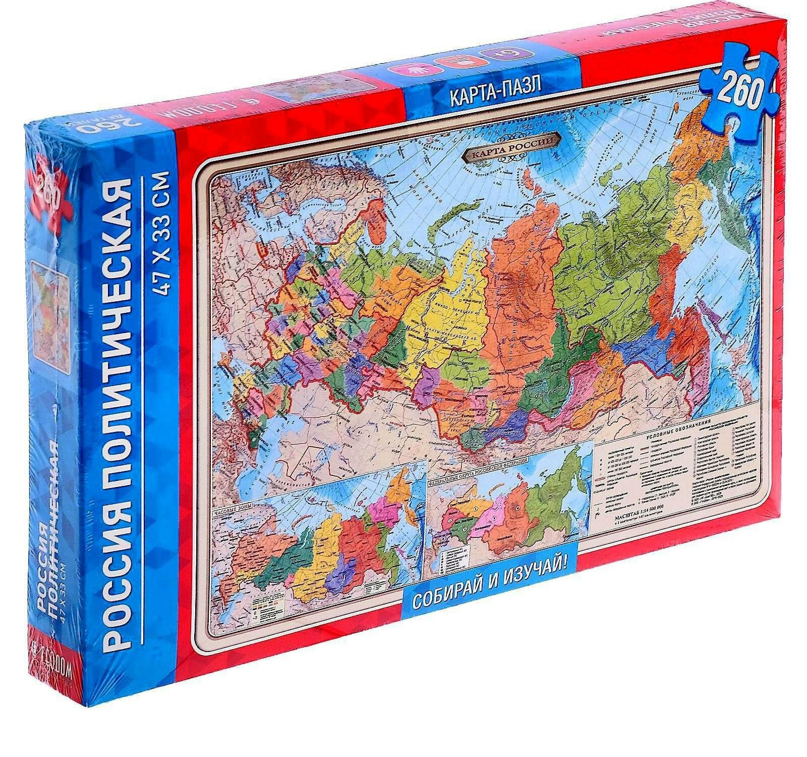 Карта-пазл "Россия политическая" (260 деталей); Геодом, 2020