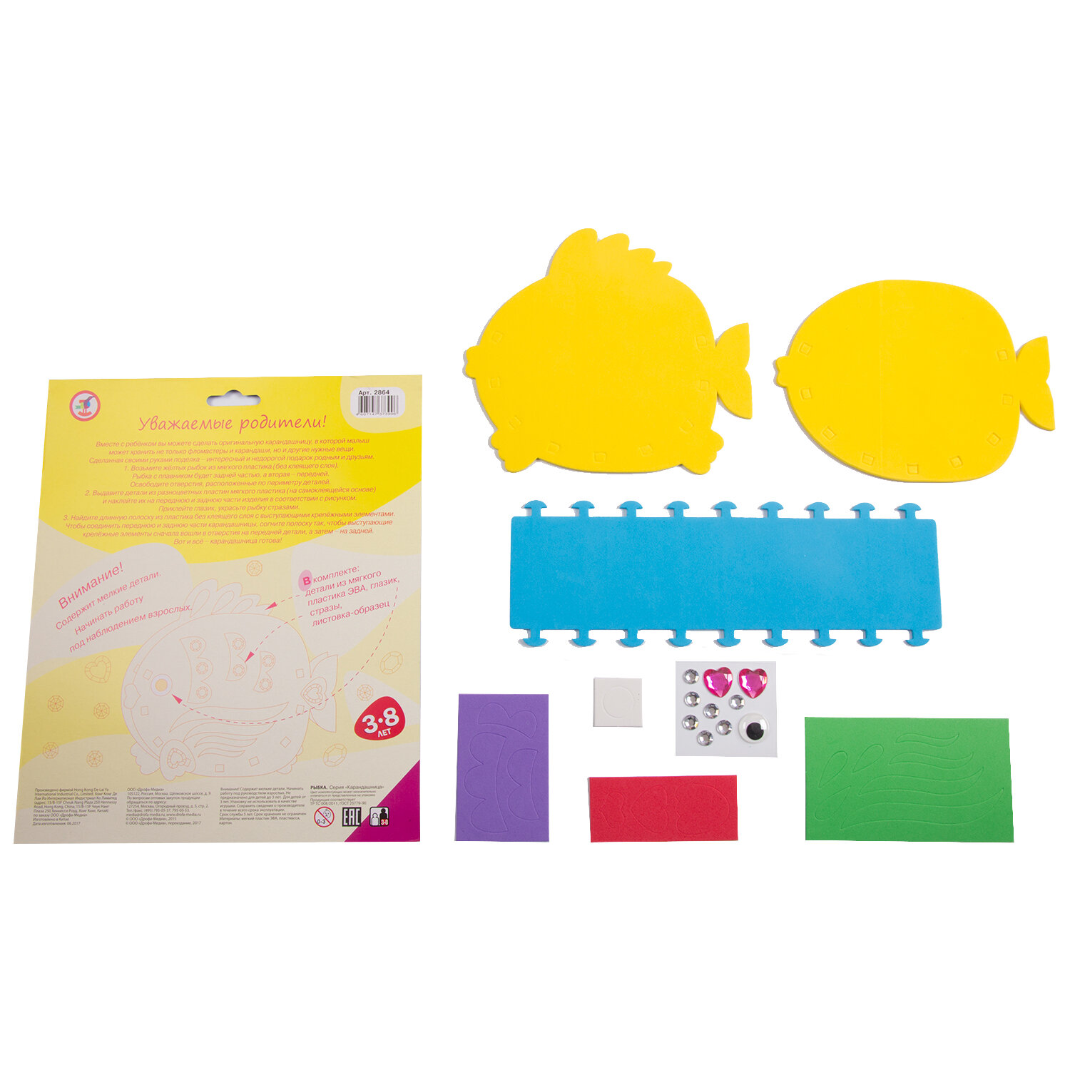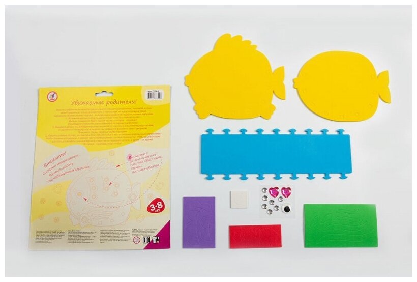 | Состав набора | детали из эва для основы; детали из эва на самоклеящейся основе (7-9 цветов); декоративные элементы на самоклеящейся основе (стразы, глазки); цветная листовка-образец |