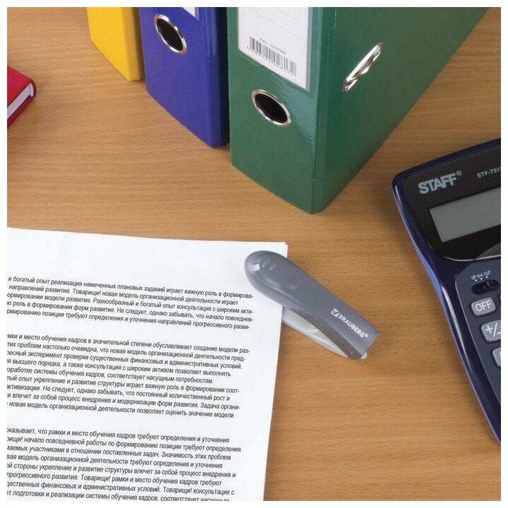 Настольный степлер эргономичного дизайна с металлическим механизмом обеспечит качественное скрепление документов.