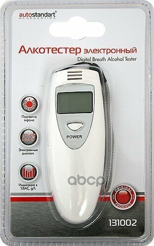 Электроника Autostandart Алкотестер Inspector AT350 оснащен электрохимическим сенсором, гарантирующим высокую точность измерений. Устройство производит замер уровня алкоголя в выдыхаемом воздухе, за считанные секунды полученные данные отображаются на ЖК экране с подсветкой. Также на нем могут высвечиваться индикаторы низкого заряда батареек, высокого уровня концентрации алкоголя, повторного вдоха, невозможности проведения и завершения теста. Встроенная память рассчитана на 16 тестов. Алкотестер работает от одной батарейки типа AA.