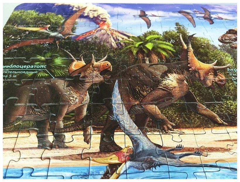 Пазлы отличные! Сын доволен, слов нет! Брала вместе с остальными подарками на Новый год! Детали довольно-таки крупные, но для нас это не плюс и не минус, т.к. собирали и мельче. Неразделенных деталей нет, склеено все отлично! Динозавры подписаны - название, чем питается и размер. Брала сыну 5 лет, собирает сам отлично! Спасибо, Лабиринт!