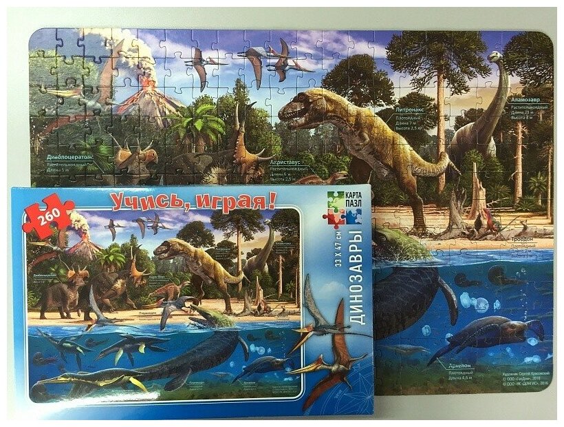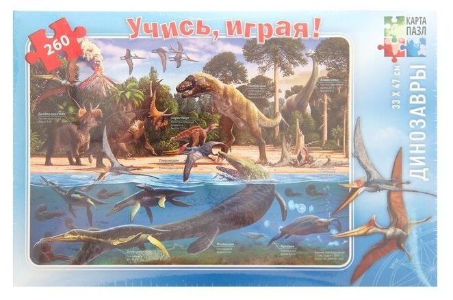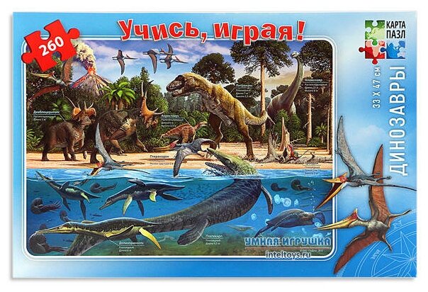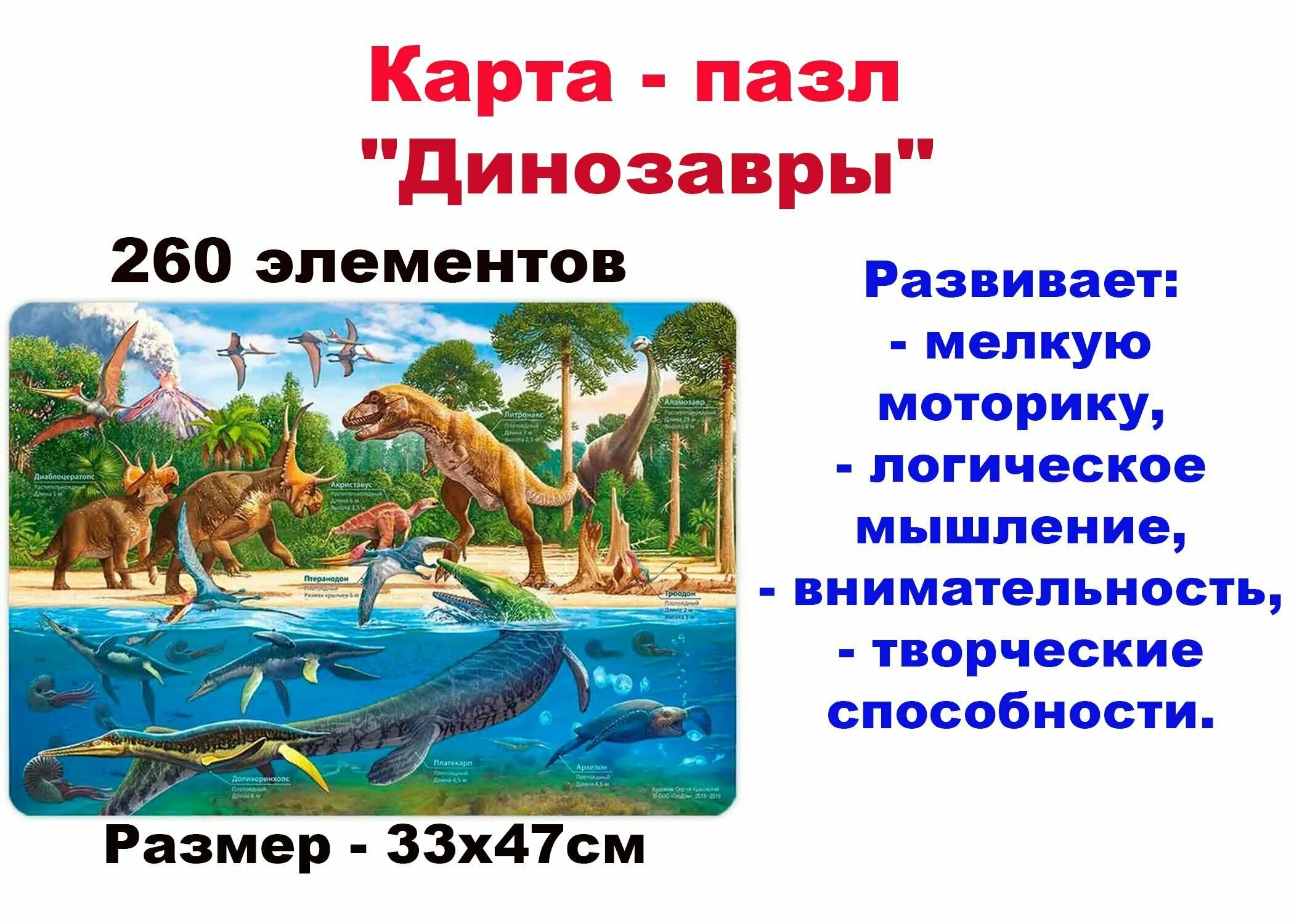 Карта-пазл "Динозавры" (260 деталей); Геодом, 2020