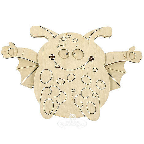 Летучая мышь, которую можно покрасить на свой вкус. Покупалась сыну 4.5 лет. Он с удовольствием собрал с папой, вместе с мамой разрисовали, но на этом интерес к игрушке кончился. Зато доча 1.5 года часто ей играет, дергает за веревочку. Рисовали акриловыми красками.