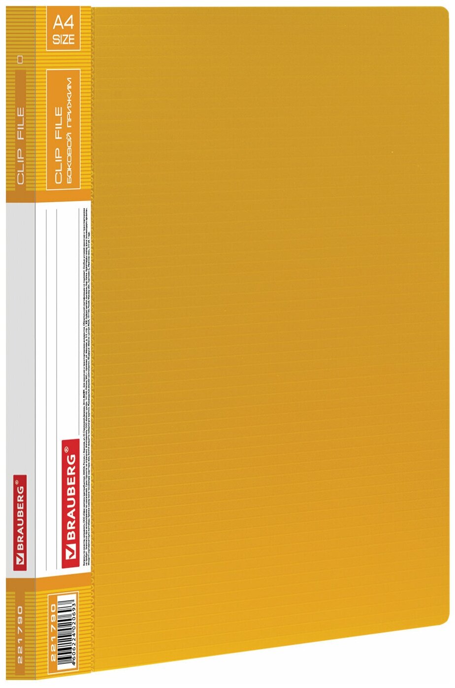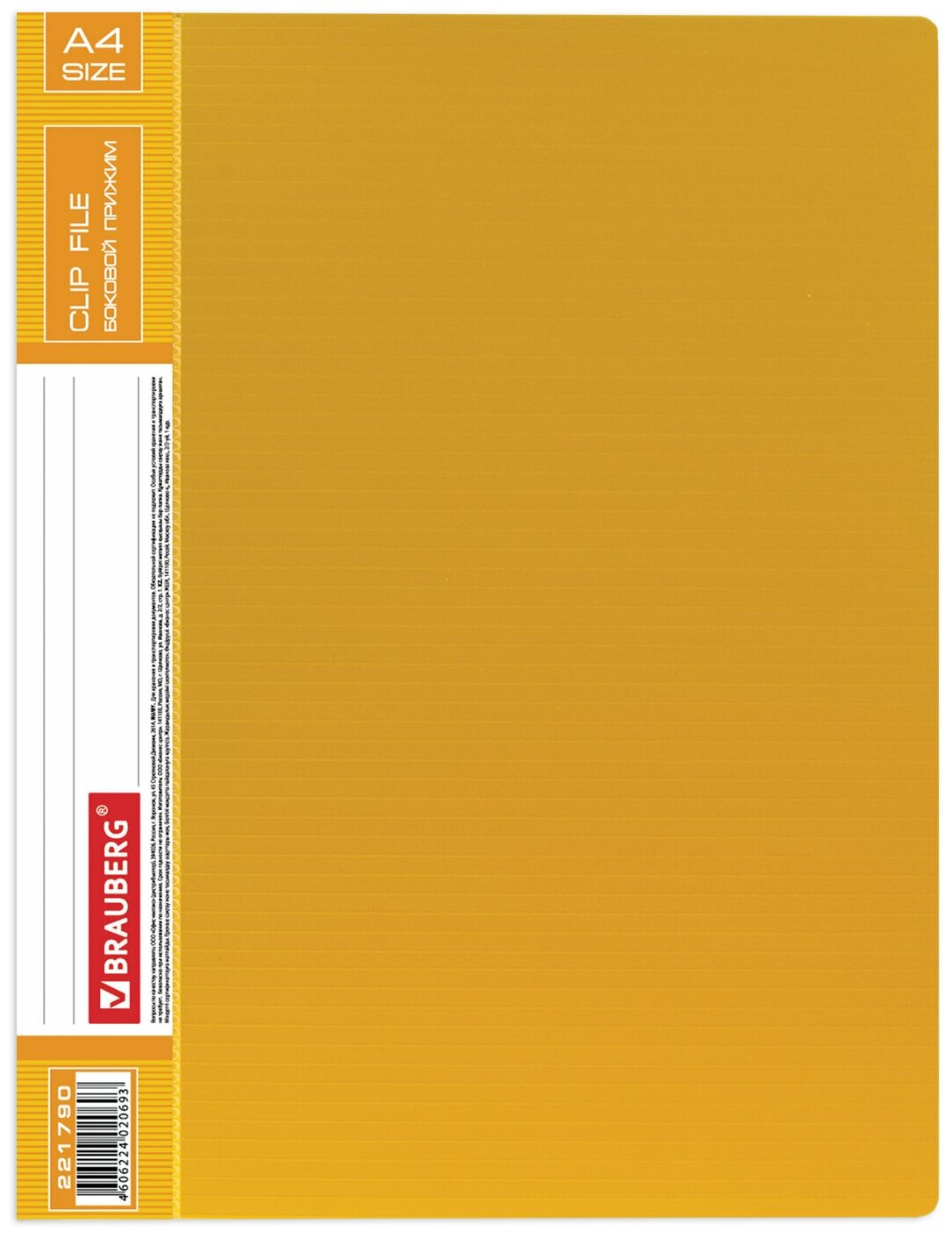 Папка с боковым металлическим прижимом и внутренним карманом желтая (221790); Brauberg, 2016