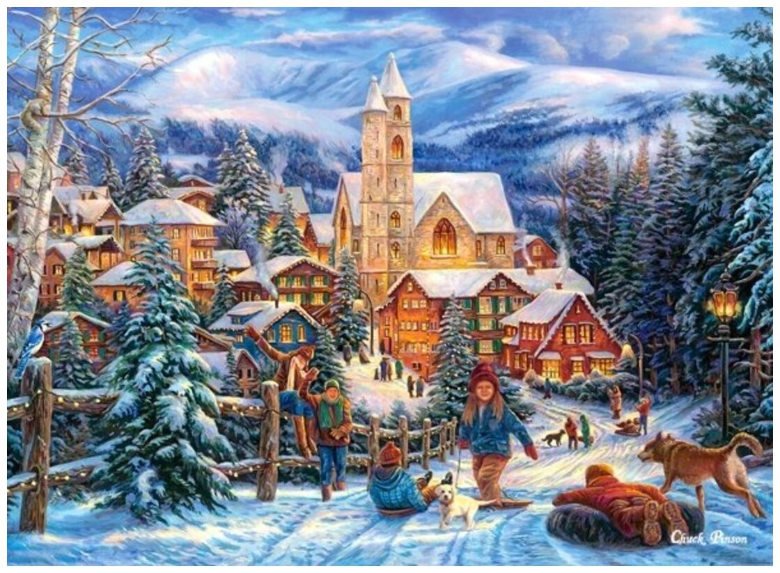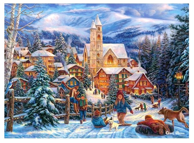С чудесным зимним настроением пазл! Качество у "касторленда", как всегда на высоте! Собирать интересно, как взрослым, так и детям! Картон плотный, сцепка замечательная. Собранную картинку можно запросто поднять за уголок - и ничего не развалится. Покупайте себе и своим детям на зимние каникулы!