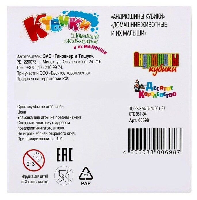 Кубики и их малыши. Домашние животные. 8 кубиков (00698); Десятое королевство, 2021