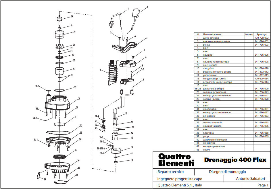 - Обзор Погружной насос ERGUS QUATTRO ELEMENTI DRENAGGIO 400 F, DRENAGGIO 550 F