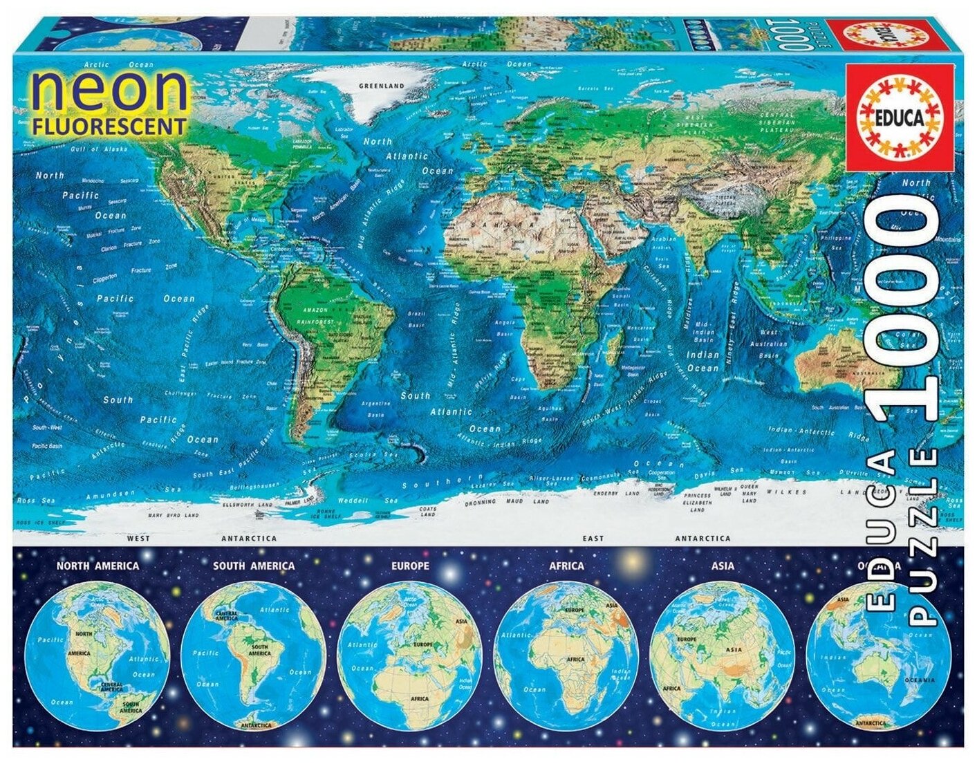 Пазл-1000 "Неоновая карта мира" (16760); Educa, 2018