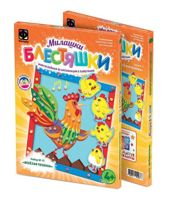 Аппликация без ножниц и клея "два-в-одном": бумажная и с пайетками. В наборе все что нужно, чтобы ребенок с пользой и удовольствием провел время: достаточно плотная картонная основа, детали аппликации из картона (хвост петуха, цыплята, рамка), объемный двусторонний скотч (его впритык, если неаккуратно использовать - может и не хватит), а вот пайеток - с избытком, точно останутся. Дети старше пяти лет могут справиться сами. В целом рекомендую.