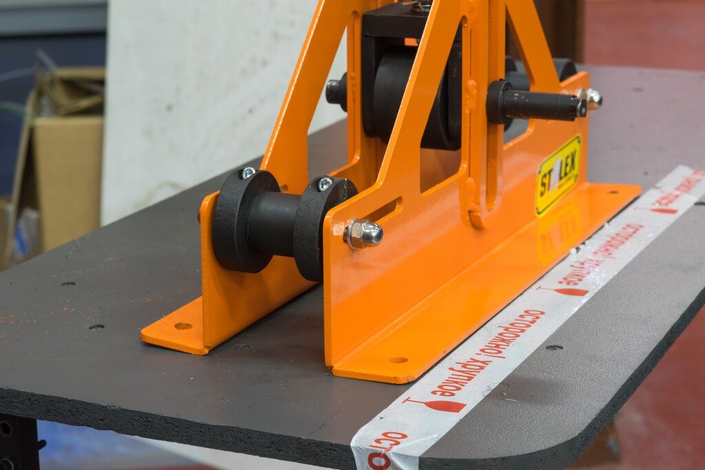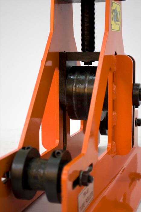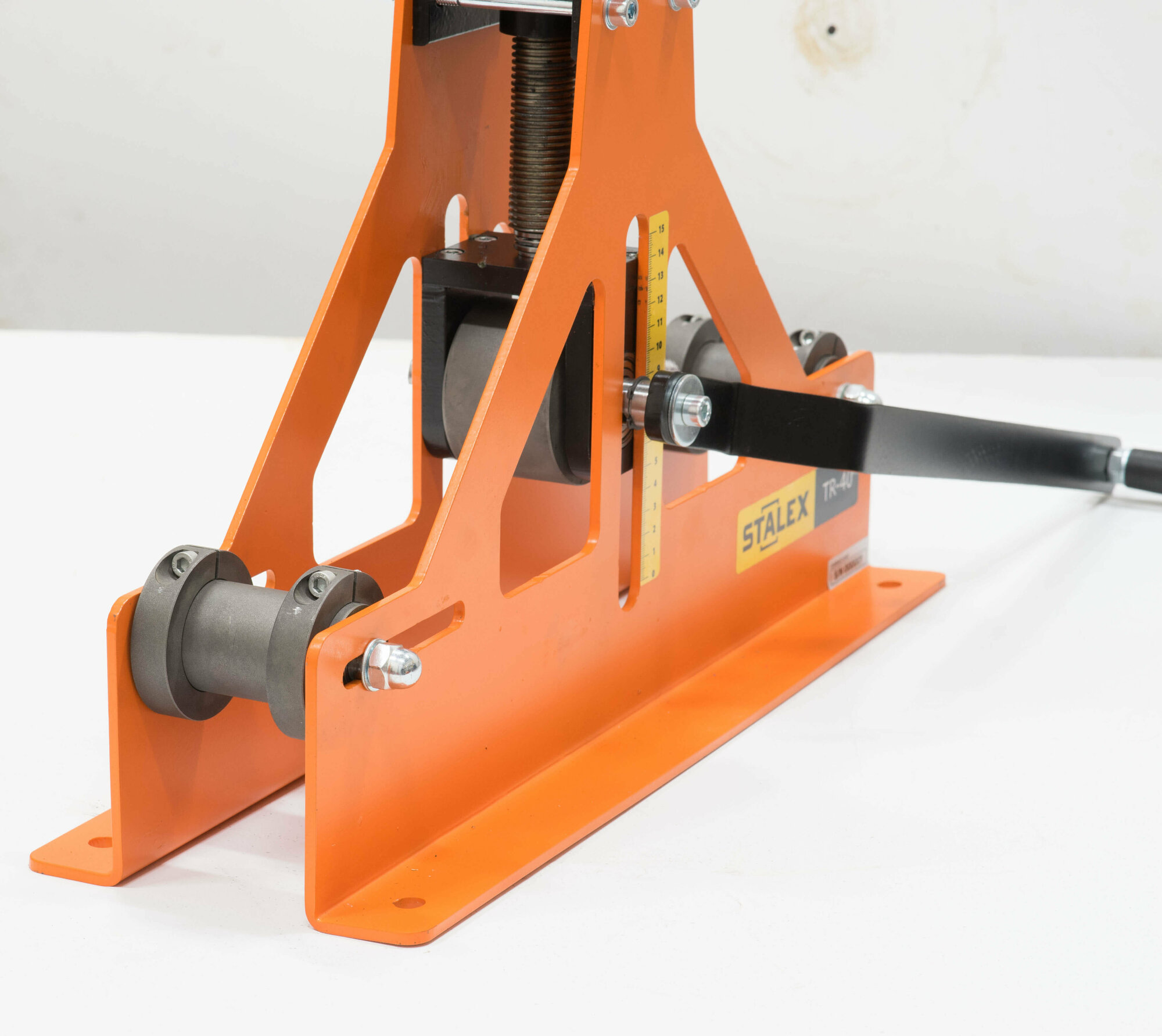 Stalex является универсальным трубогибом начального уровня, с помощью которого можно быстро изгибать малопрофильные и среднепрофильные стальные, медные и алюминиевые трубы. Данный трубогиб мобилен, его можно использовать в гаражах, маленьких мастерских, на стройплощадках. Трубогиб Stalex позволяет изготавливать гнутые перила, небольшой навес или козырёк, а также другие изделия из согнутой профильной трубы. Данный трубогиб является бюджетным инструментом для тепличного строительства. Для проката труб разной величины на одном оправочном комплекте размер должен быть в интервале от 15x15 мм до 40x40 мм. Конструктивные особенности данного трубогиба дают возможность оперативно изменять межваловое расстояние, чтобы иметь возможность регулировать радиус изгибания. С помощью верхнего приводного вала, имеющего оптимальную длину рычага, можно легко производить гибку заготовок.