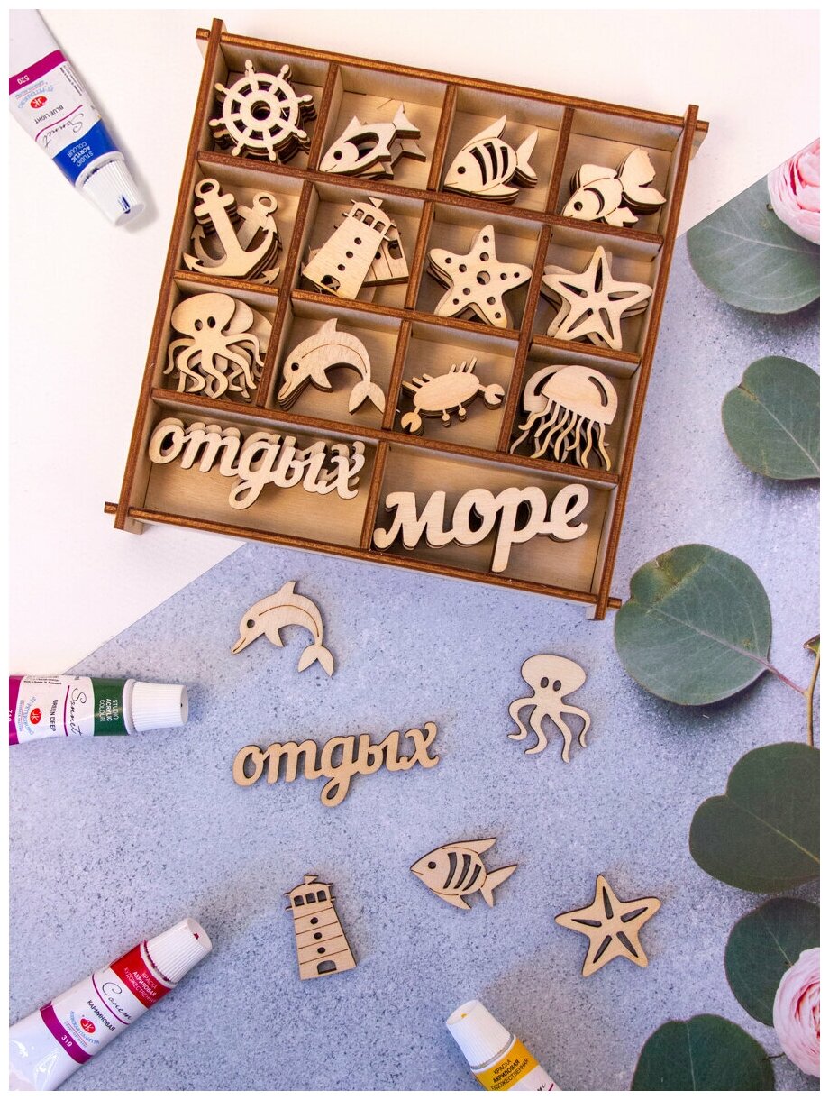 Набор украшений для скрапбукинга в коробке "Морской" (135х135); Символик, 2017
