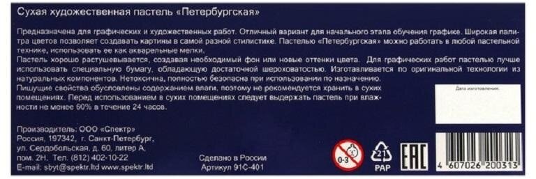Пастель художественная "Петербургская" (сухая 36 цветов) (91С-402); Спектр, 2017