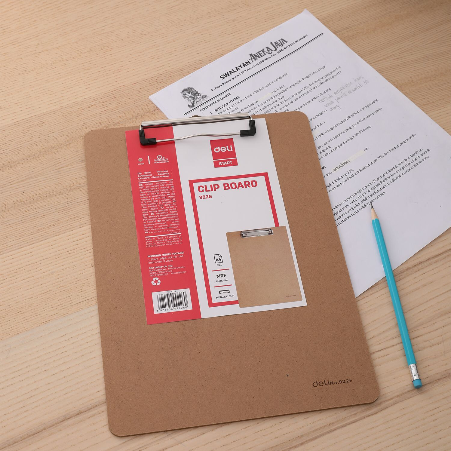Папка клип-борд А4 древесная плита бежевый (E9226); DELI, 2017