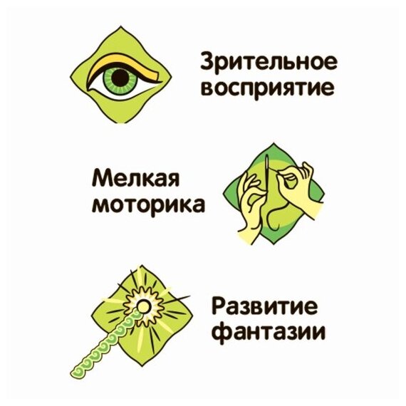 Наборы способствуют развитию мелкой моторики рук, аккуратности, усидчивости. А также - воображения и творческих способностей.