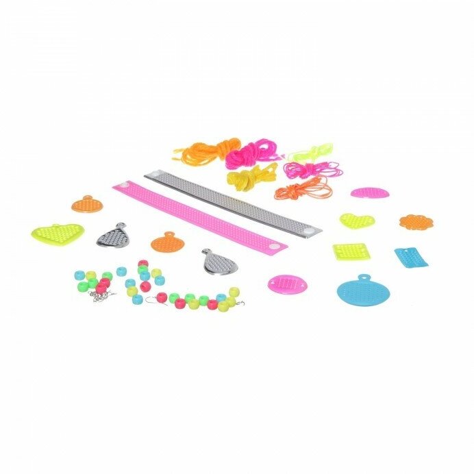Состав набора: 12 подвесок-шармов, 2 ремешка для браслетов, 6 видов нитей, 30 бусин, 4 крючка для сережек, 2 пластиковые иглы, 2 застежки, иллюстрированная инструкция.