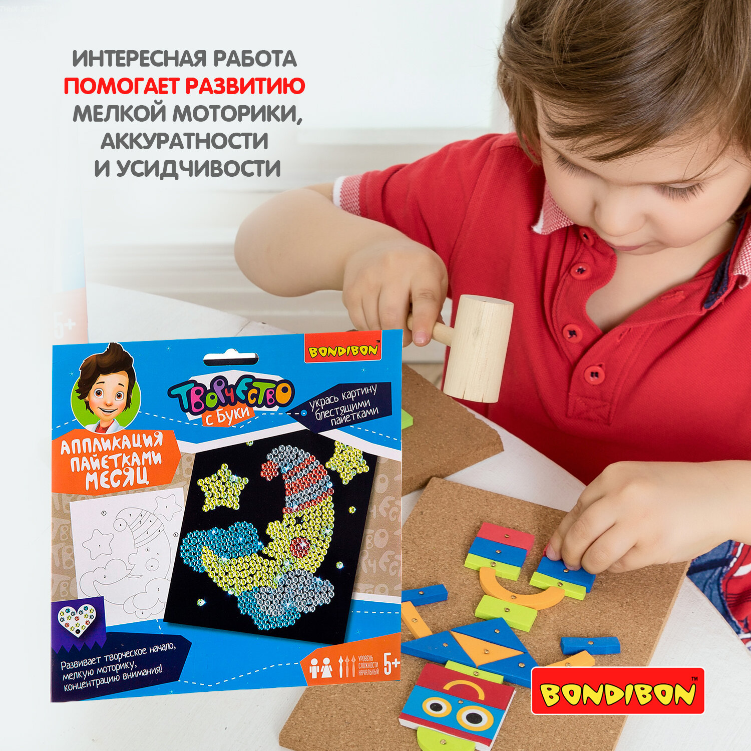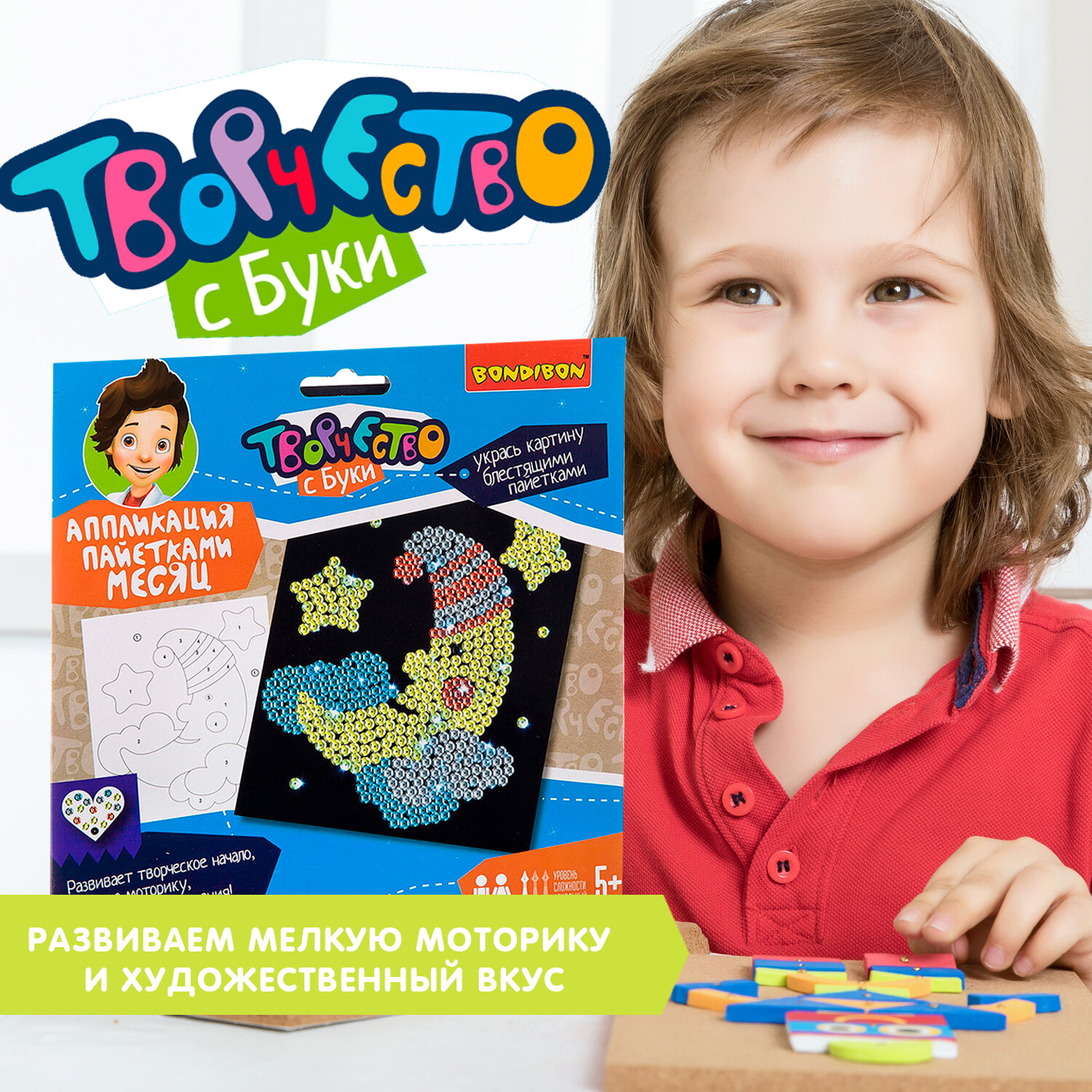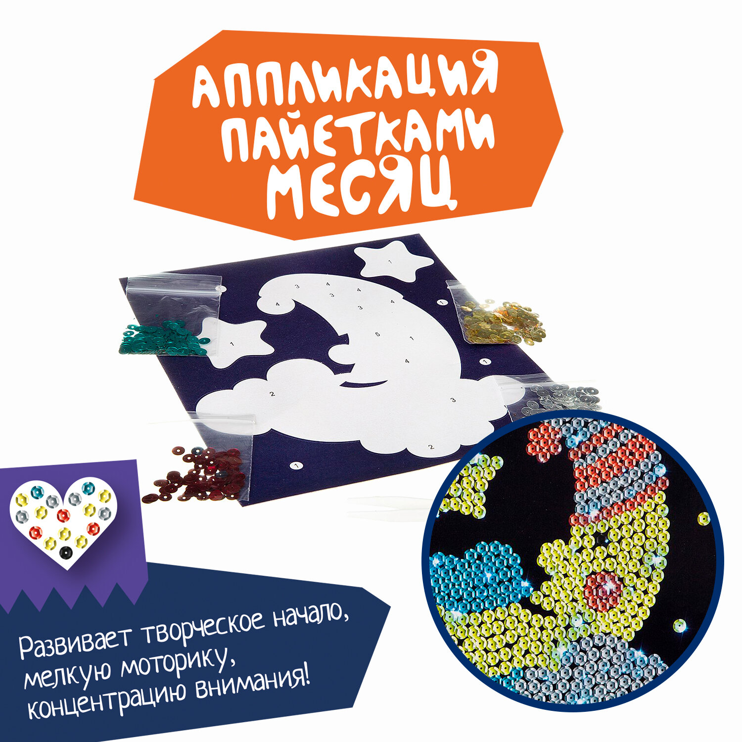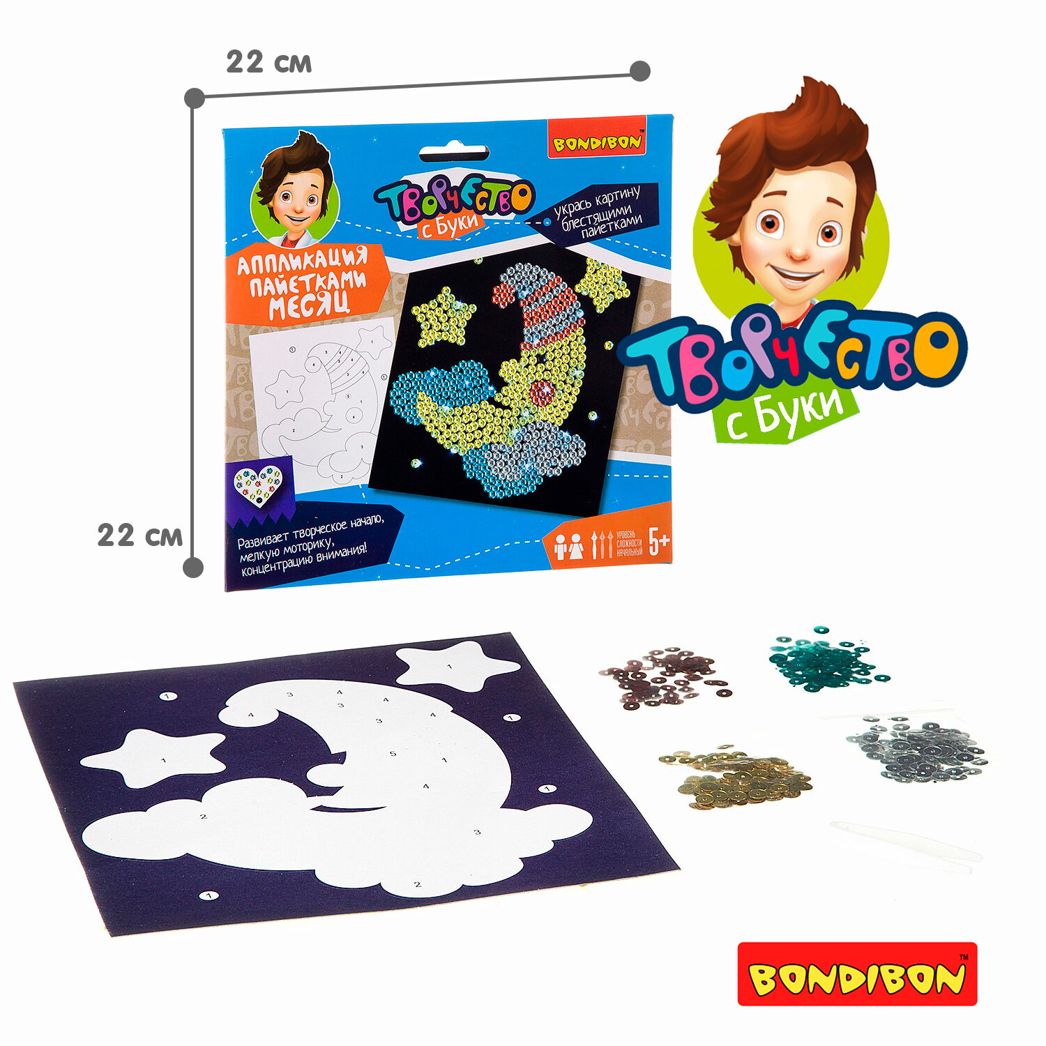 Набор для творчества. Аппликация пайетками "Месяц" (ВВ2163); BONDIBON, 2020