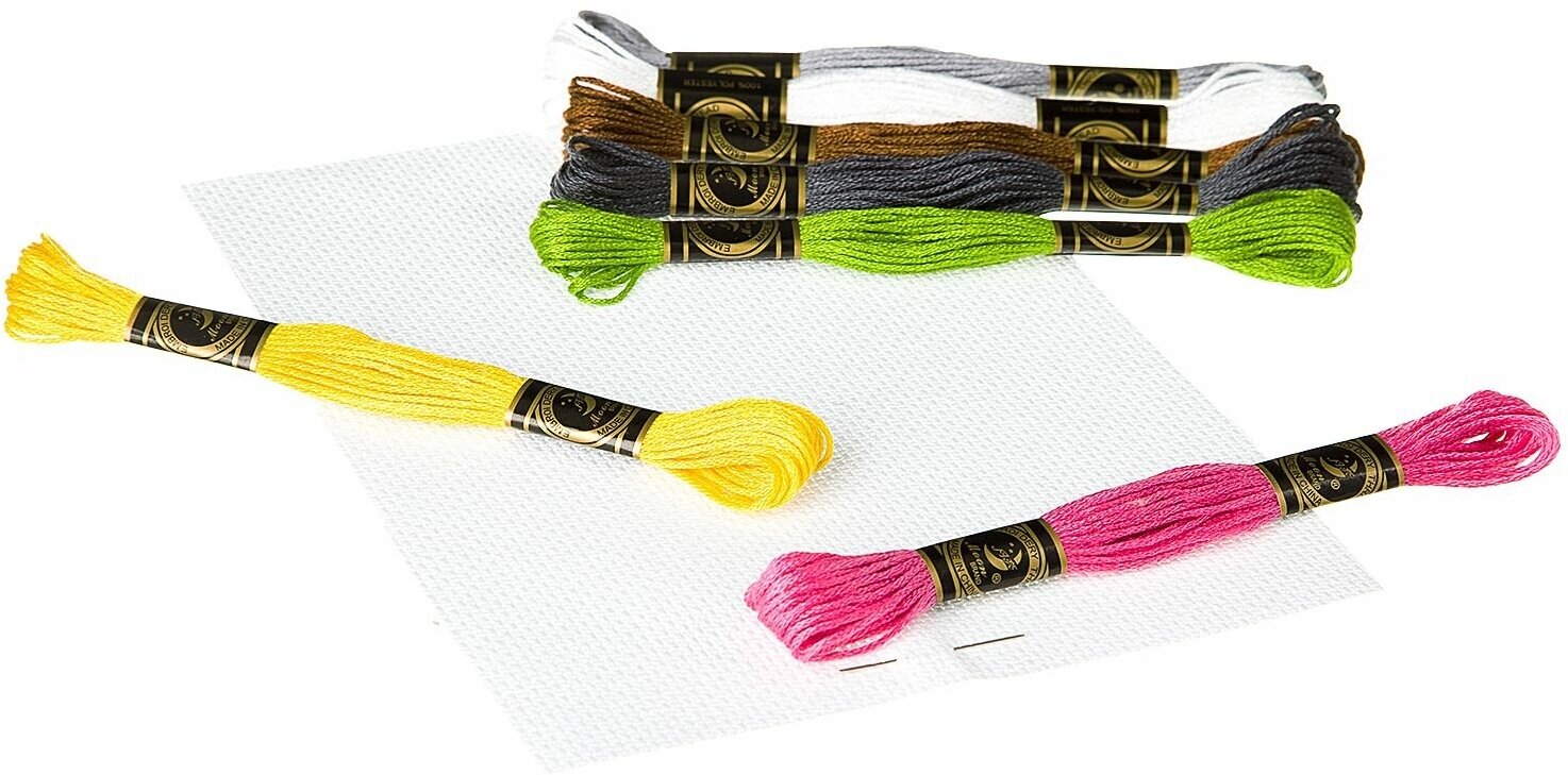 Состав набора: нити-мулине, канва, цветная схема для вышивки, игла, инструкция.