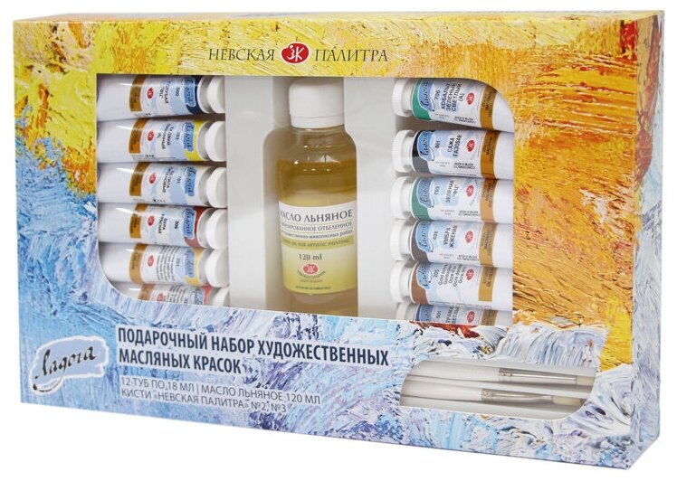 Краски художественные масляные 12 цветов "Ладога" (1241967); Невская палитра