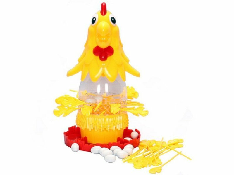 Покупала игрушку 2-хлетнему ребенку. Дочке нравится закладывать яйца и вытаскивать перья, конечно же, не соблюдая правила)))) Подготовка к игре (втыкание перьев) полностью на мне, с этой задачей ребенок не справляется.