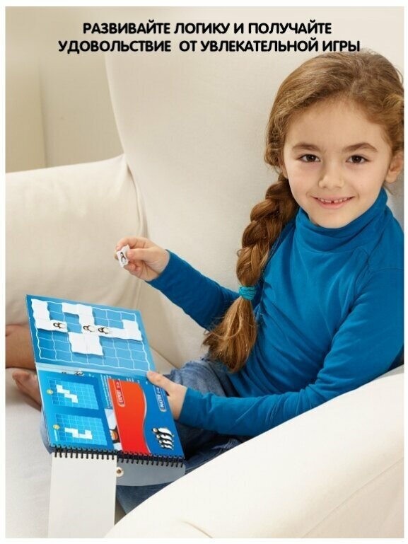 Купила для 5 летней дочки. Ребусы и головоломки в книгах ей немного наскучили, а здесь, благодаря забавным пингвинам на льдинках и магнитной площадке, задания воспринимаются как игра. Отличная игра-головоломка – 4 уровня сложности, от простого к сложному, есть ответы. Будет интересно как дошкольнику, так и постарше. Очень понравилось качество магнитной книги – яркая печать, добротный картон, кнопка-защелка. Небольшой размер (16*16 см)– действительно удобно и дома, и в дороге. Рекомендую.