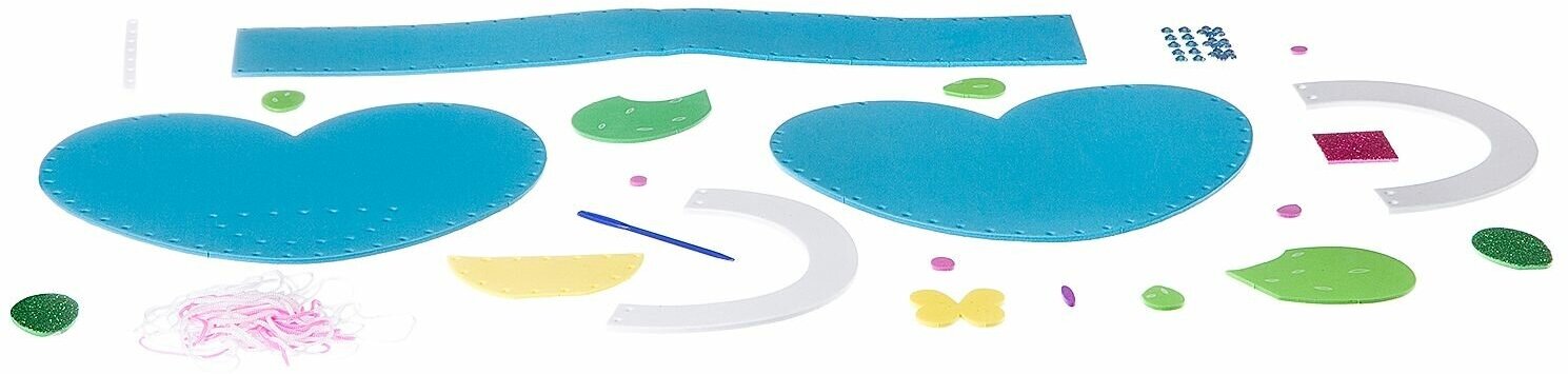 В наборе: детали из ЕVA, декоративные элементы, пластиковая игла, нить.
