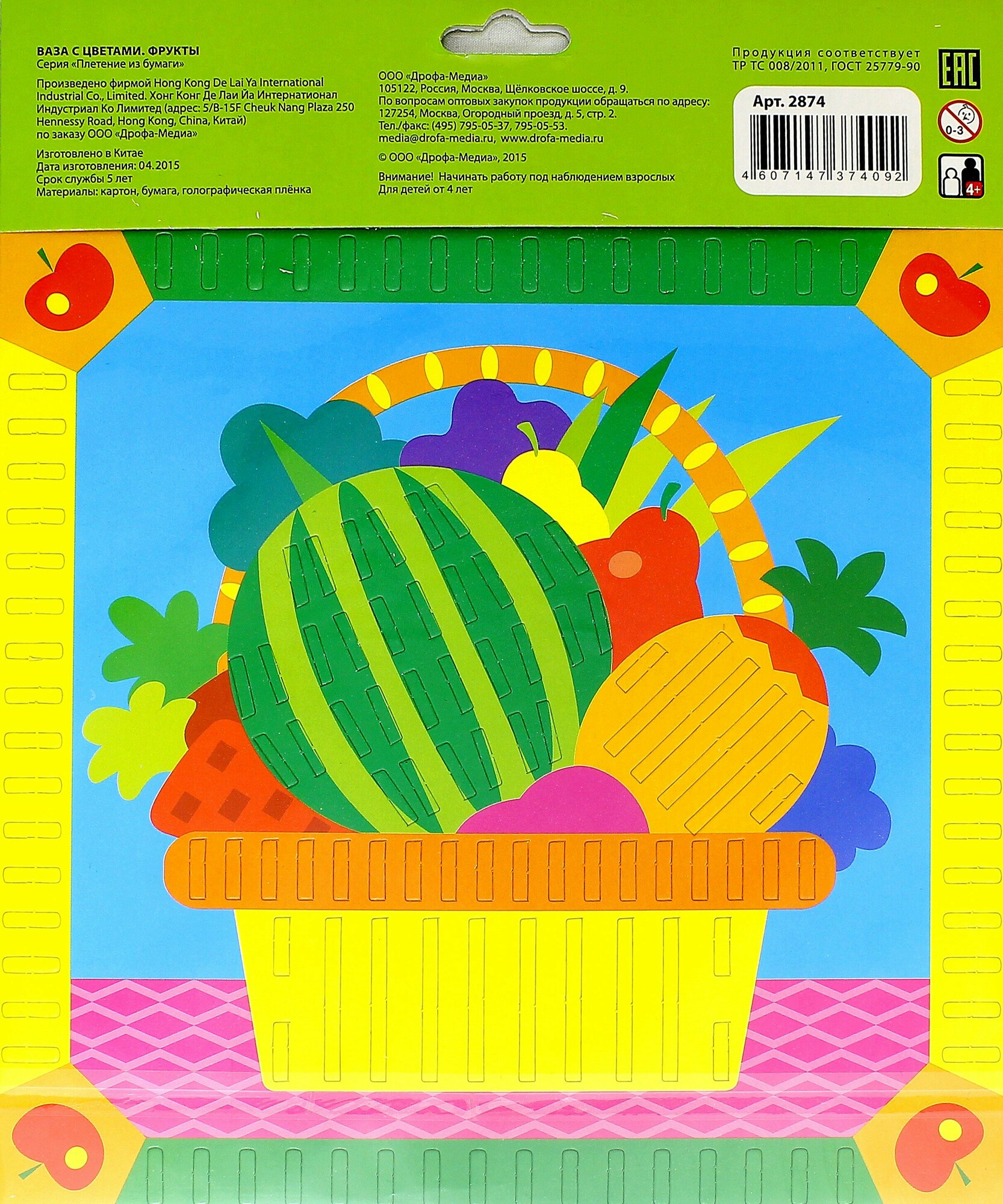 Плетение из бумаги. "Ваза с цветами. Фрукты" (2874); Дрофа Медиа, 2017