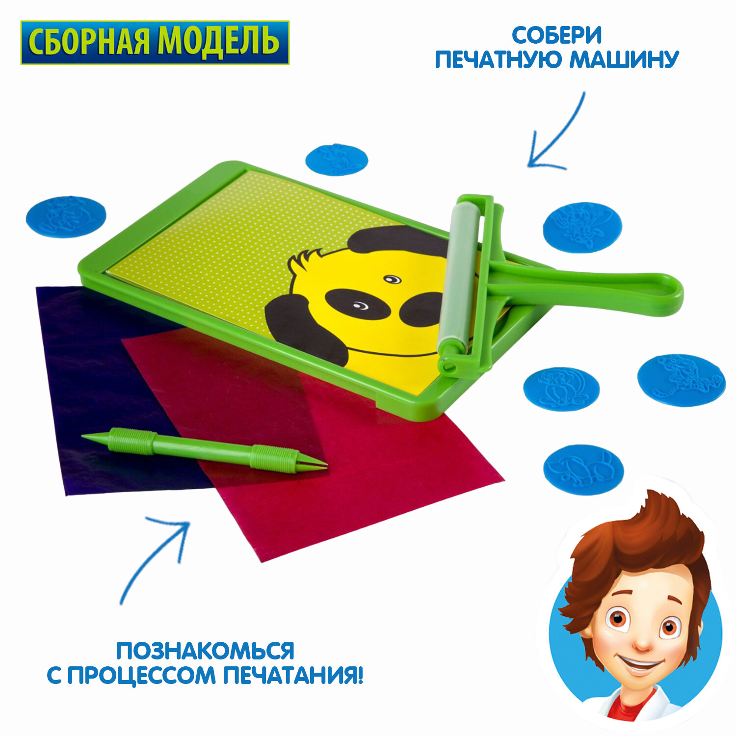 С этим набором ребенок познакомится с азами печатного дела и узнает принцип печати книг и другой печатной продукции.