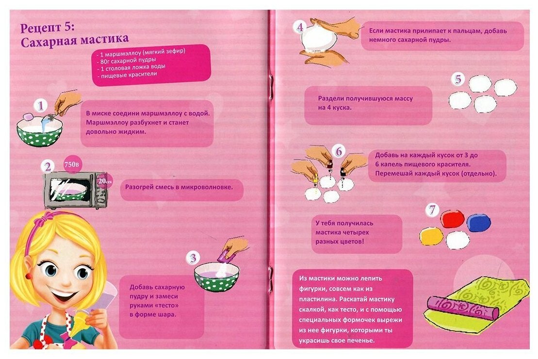 Комплектность: инструкция, 6 пакетиков, 6 ленточек, 15 формочек для вырезания фигурок из теста, 5 формочек для вырезания фигурок из мастики, скалка, бытылочка для нанесения глазури, 3 наконечника, пинцет, 2 кольца для хранения