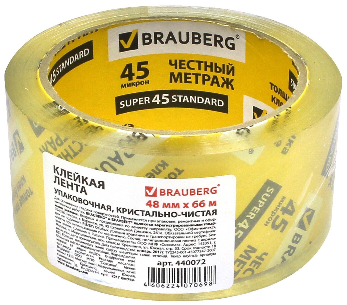Клейкая лента 48мм х 66м 45мкм (440072); Brauberg, 2017