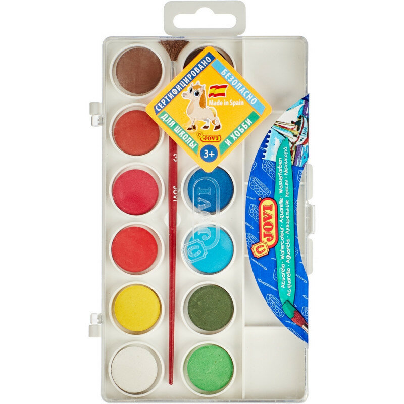 Краски акварельные 12 цветов с кистью (800/12); Jovi