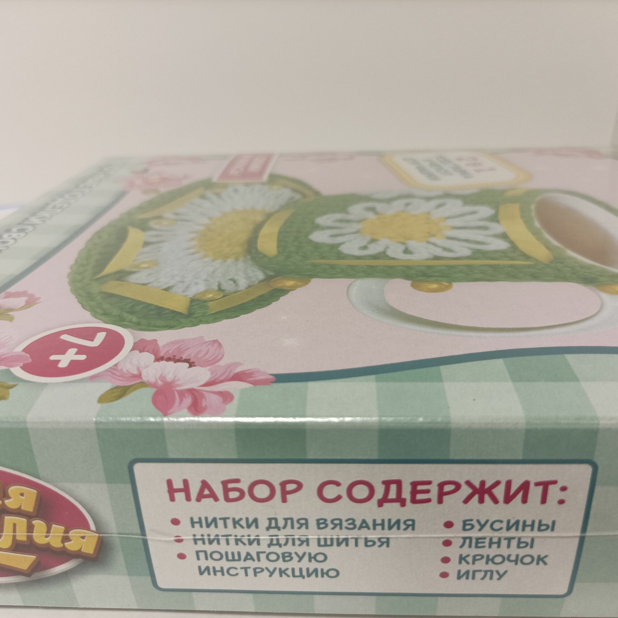 | Состав набора | нитки для вязания; нитки для шитья; бусины; ленты; крючок; игла |