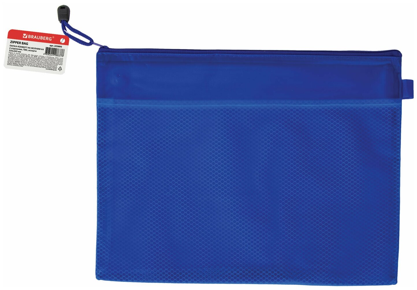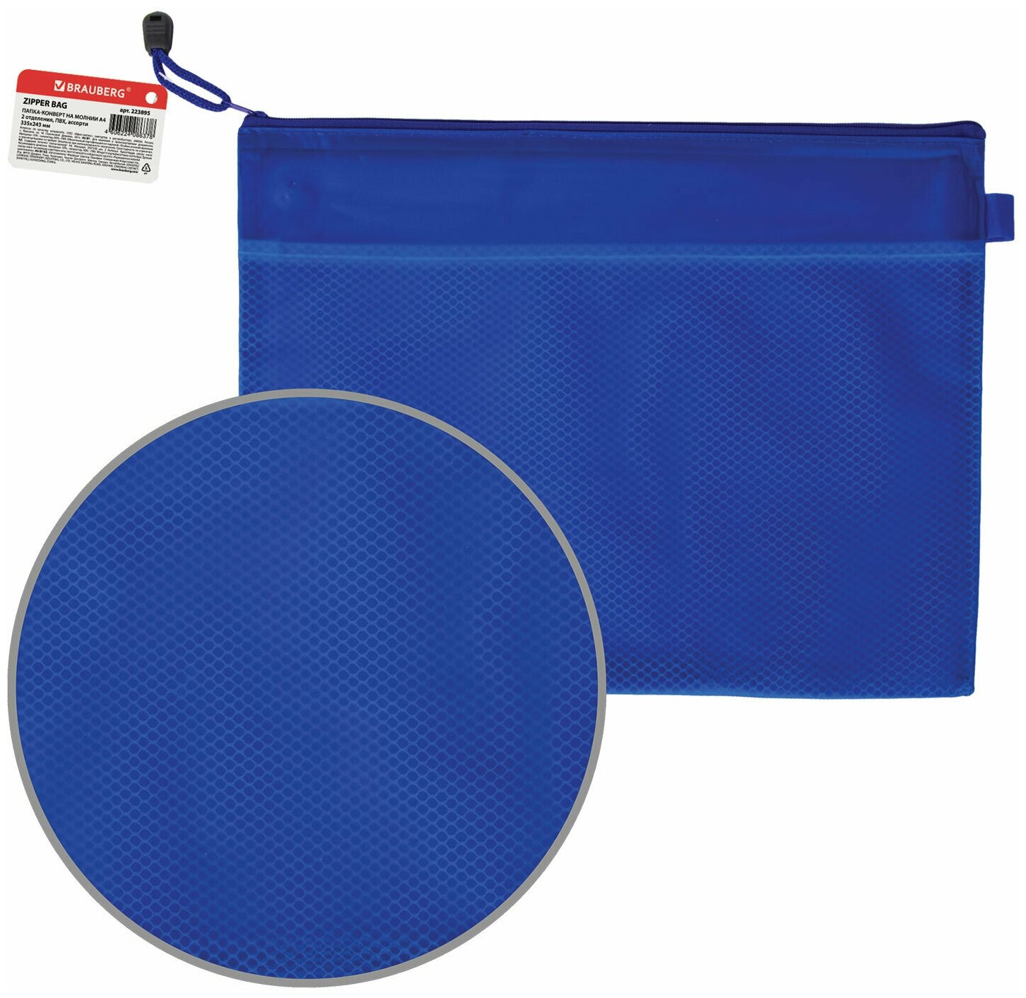 Папка-конверт на молнии BRAUBERG "Energy", А4, 335*243 мм, 2 отделения, ПВХ нейлон, в ассортименте.