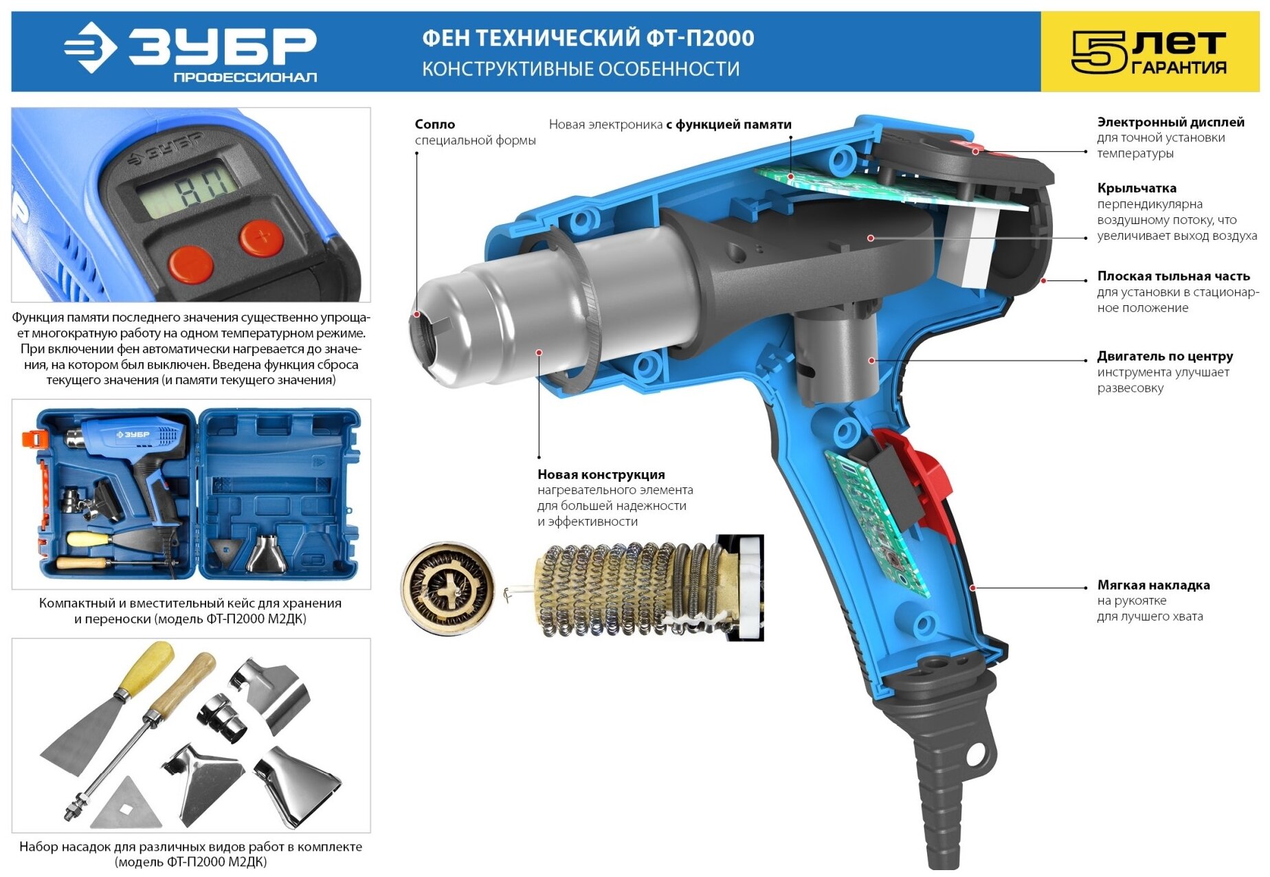 - Фен технический ЗУБР Профессионал ФТ П2000 М2ДК