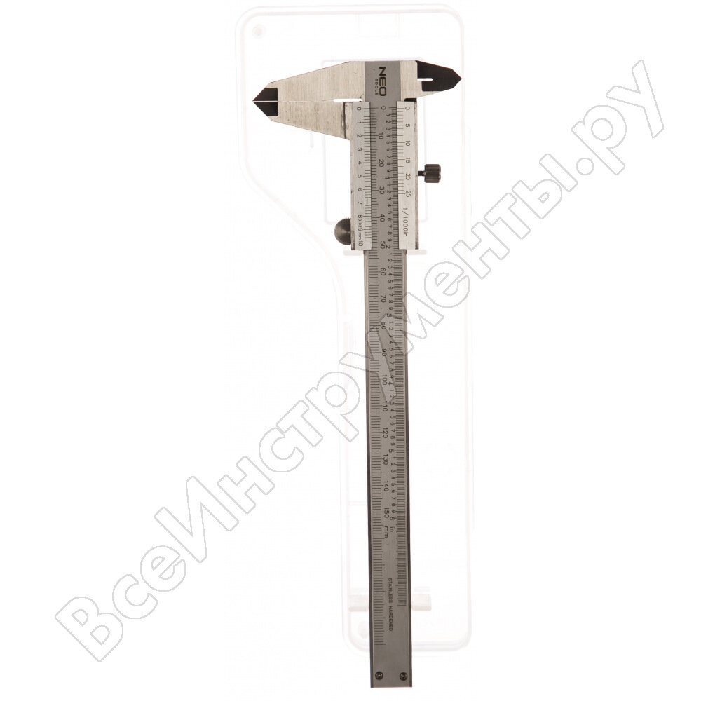 Штангенциркуль NEO 150 мм нержавеющая сталь обеспечивает высокую точность измерений за счет классической нониусной системы. Инструмент обладает прочной и жесткой штангой для меньшей погрешности при измерениях.