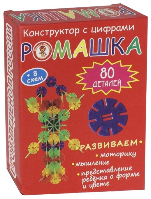 Детский конструктор "Ромашка" обязательно увлечёт ребёнка. В набор входят 80 разноцветных деталей: красного, жёлтого, синего и зелёного цветов. На упаковке представлено несколько схем сборки конструктора, которые можно использовать в качестве образца.