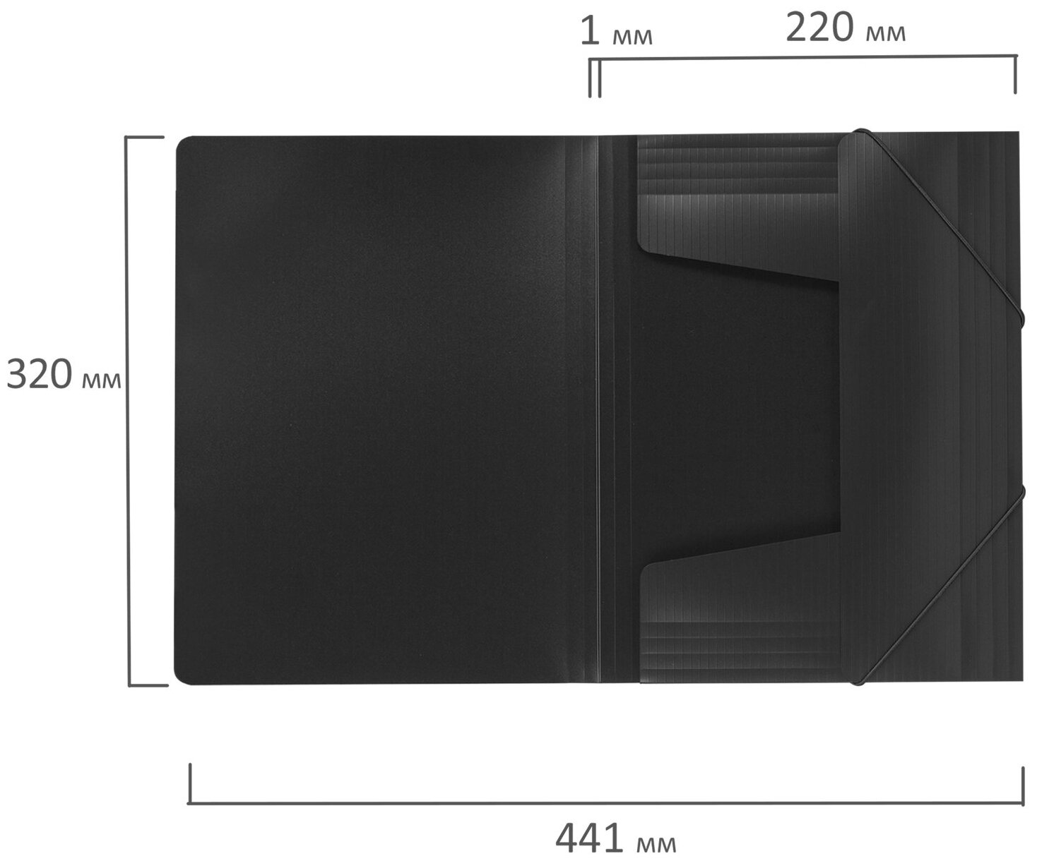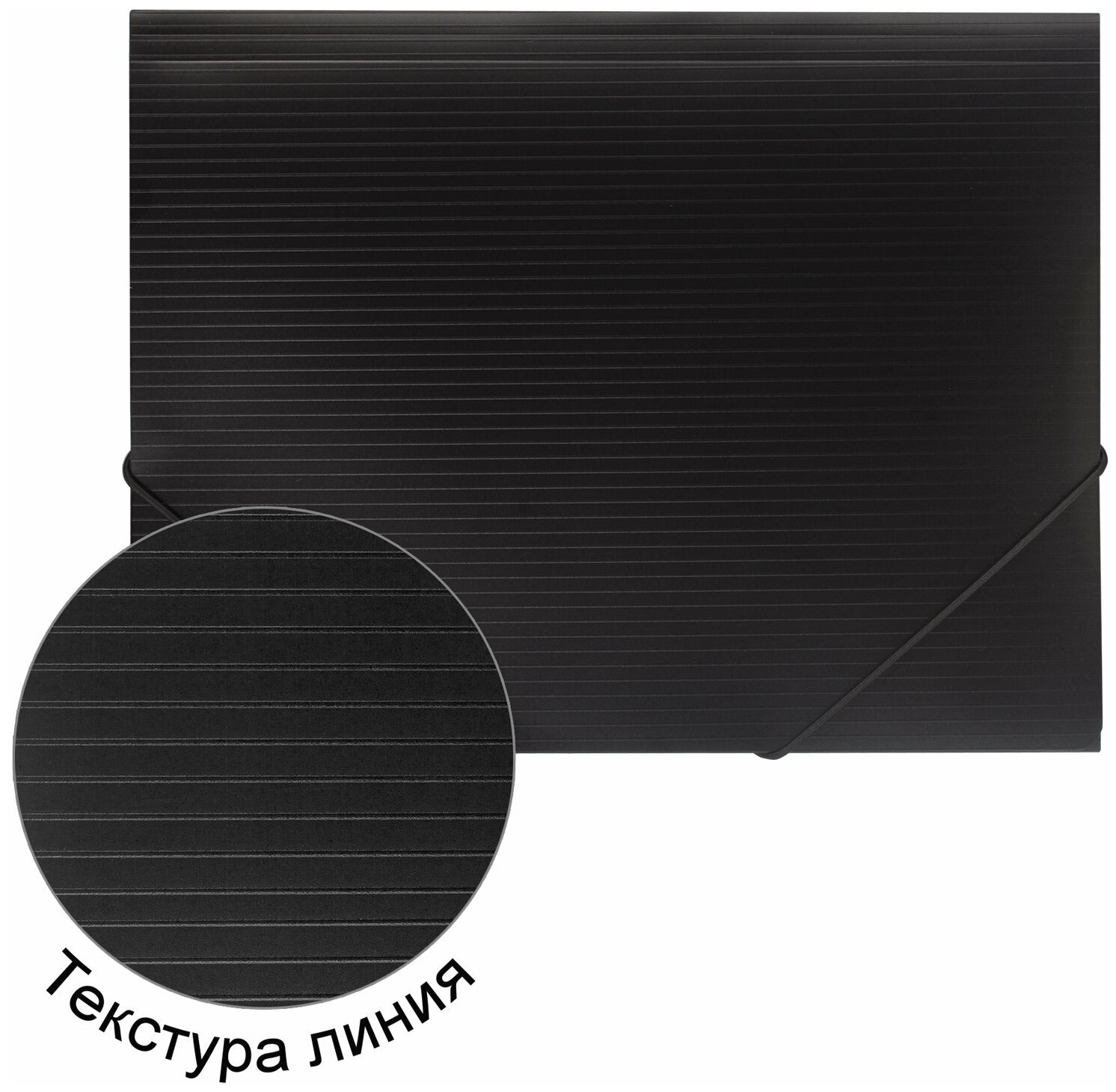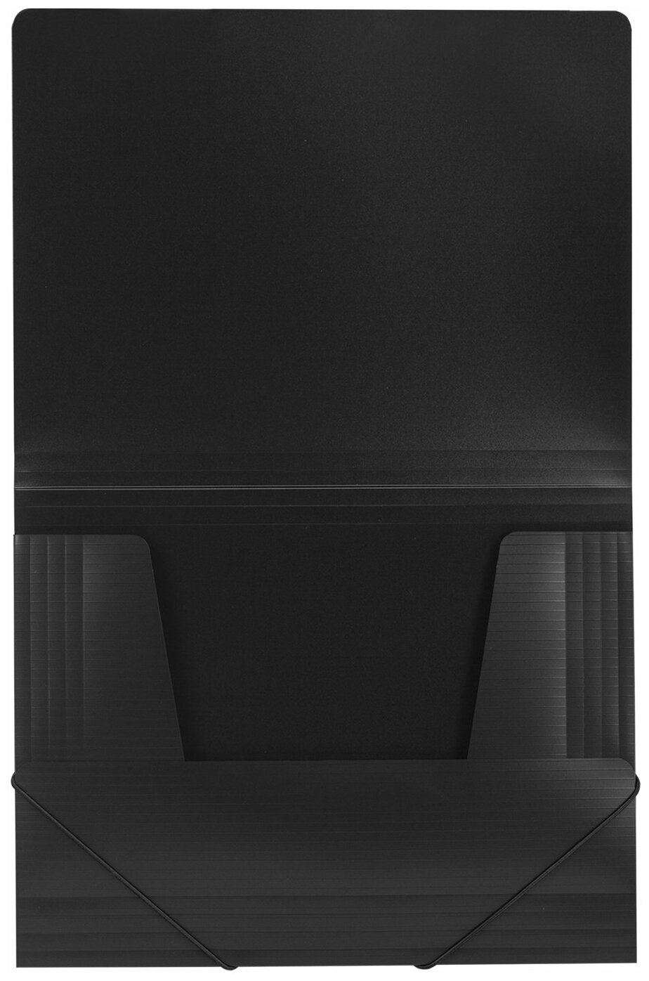 Папки бизнес-класса изготовлены из высококачественного пластика с оригинальной линейной фактурой. Клапаны папки надежно удерживают документы внутри. Резинки плотно закрывают папку.