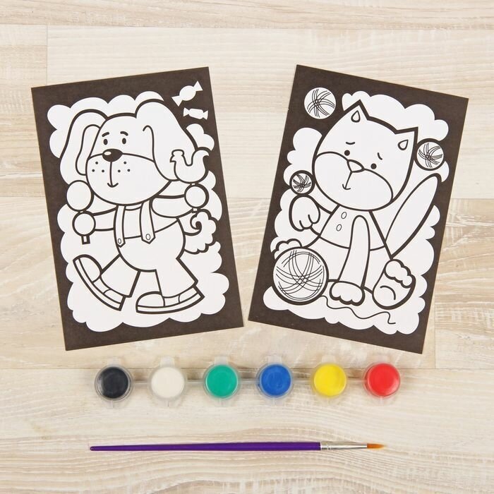 В набор входит: краски акриловые, кисть, лист для раскрашивания.
