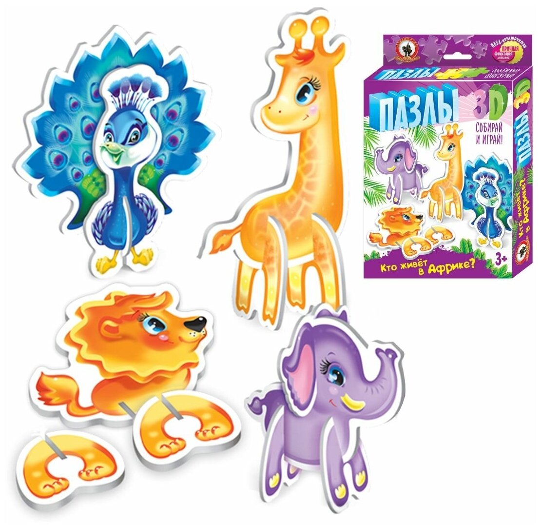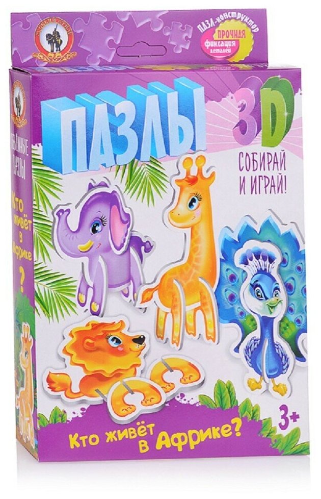 Пазлы 3D "Кто живет в Африке?" (02400); Русский стиль, 2018