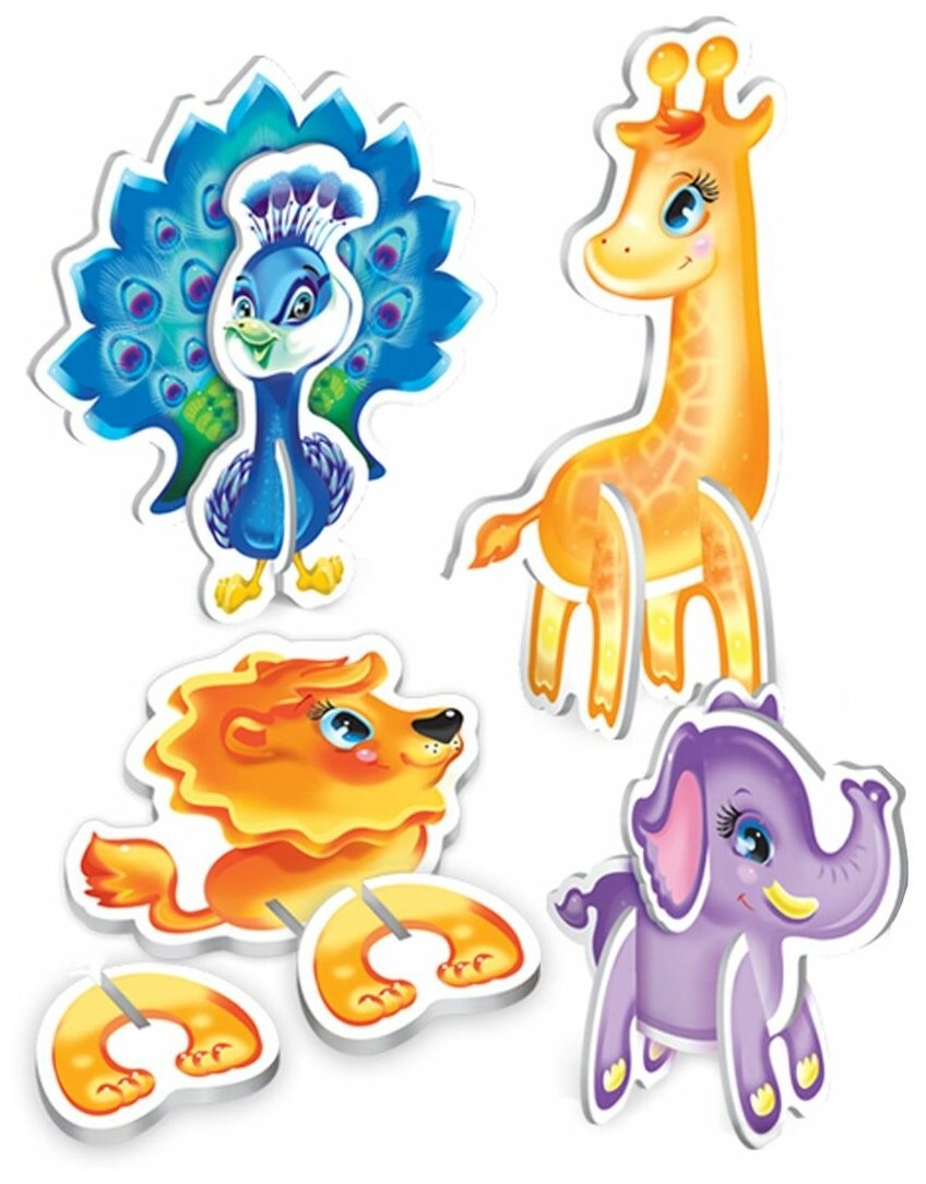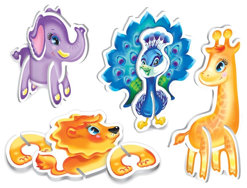 Состав набора:Жираф- 3 эл, Павлин - 3 эл, Лев - 3 эл, Слоник - 4 эл.
