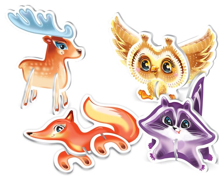 Состав набора:Лиса- 3 эл, Олень - 3 эл, Енот - 3 эл, Сова - 3 эл.