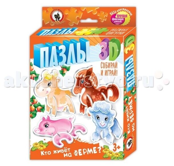 Пазлы 3D "Кто живет на ферме?" (02403); Русский стиль, 2018