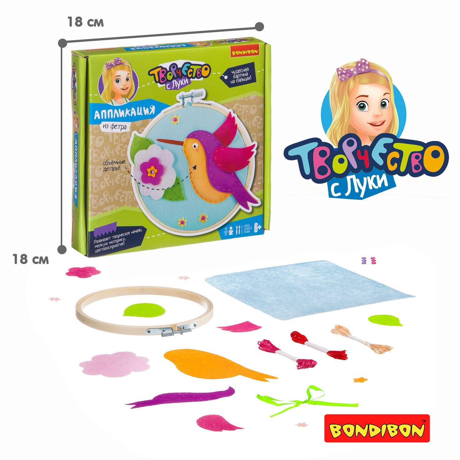 Набор "Аппликация из фетра. Птичка- невеличка" (ВВ2697); BONDIBON, 2017