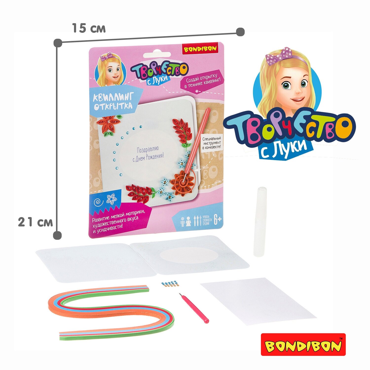 Квиллинг или бумагокручение - увлекательный вид творчества по изготовлению плоских или объёмных композиций из скрученных в спиральки длинных и узких полосок бумаги. С помощью специального инструмента для кручения (в комплекте) ваш ребенок создаст замечательную объемную открытку, состоящую из различных элементов и форм.