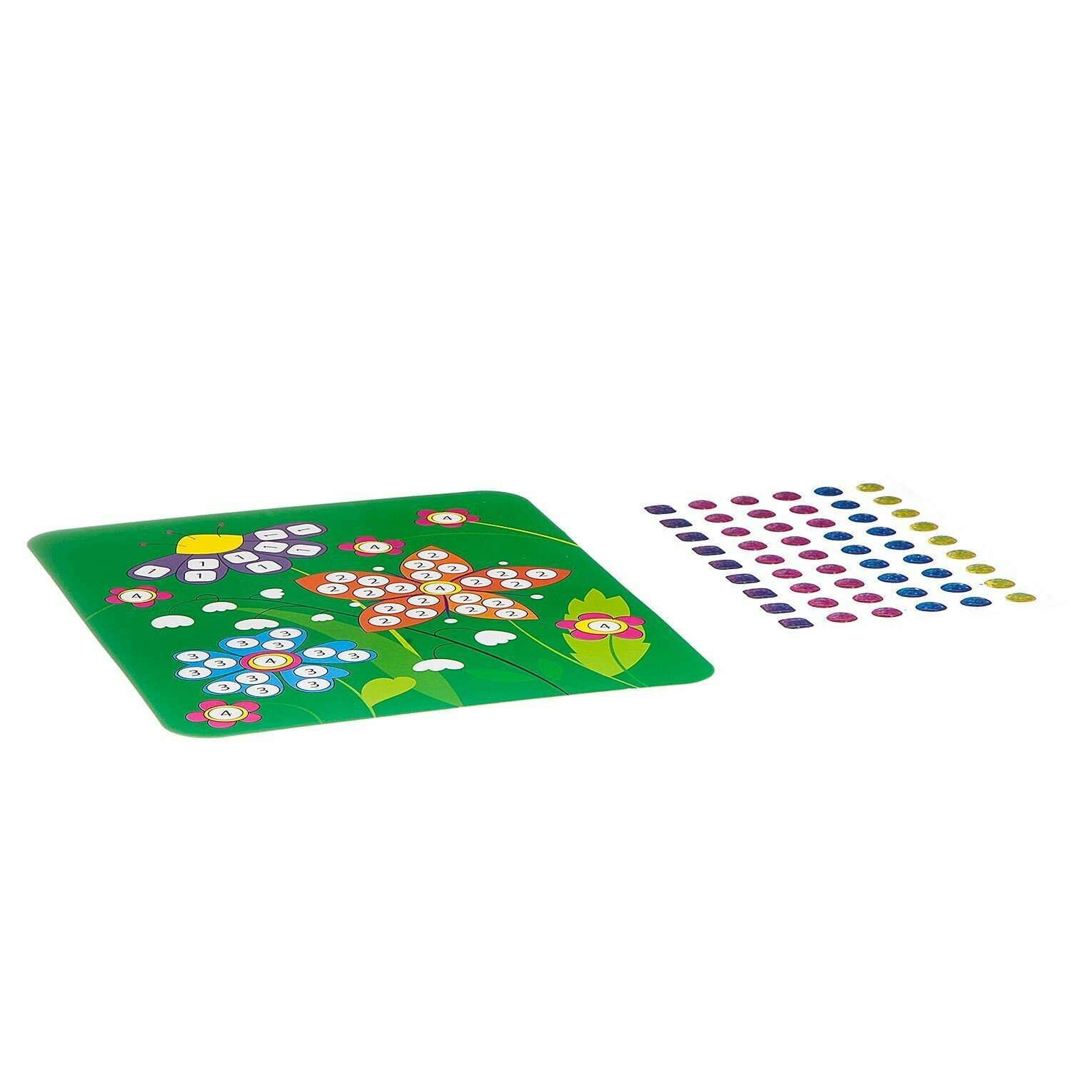 В наборе: цветная основа для картины, набор наклеек.
