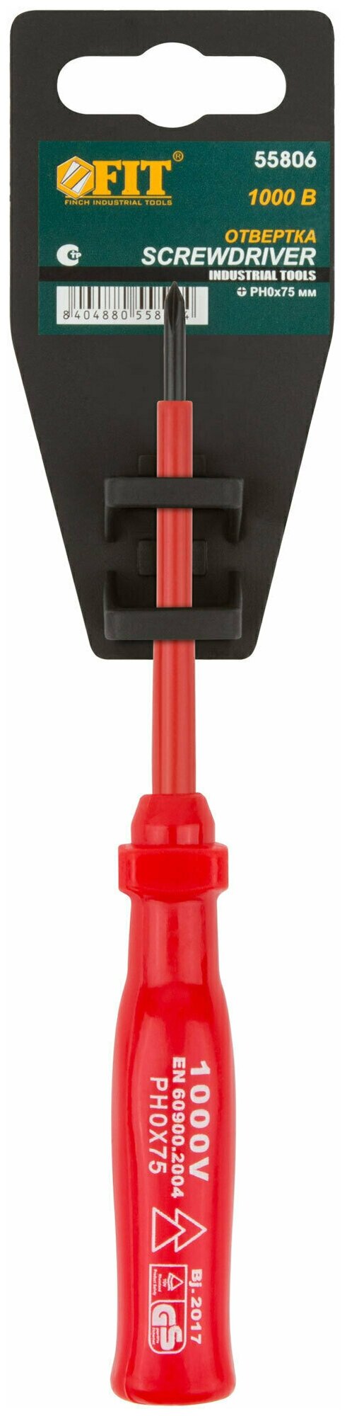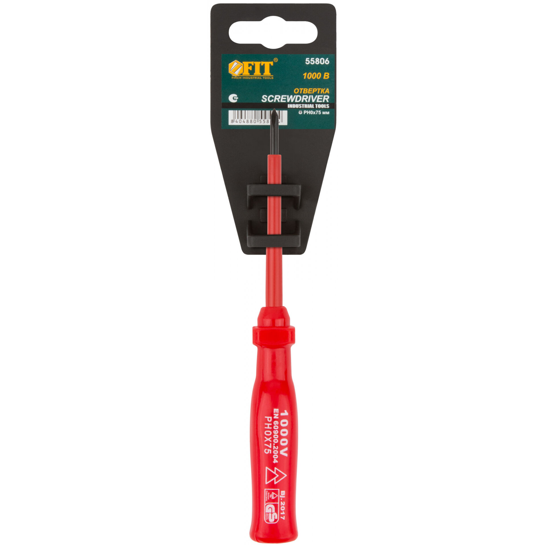 Отвертка изолированная FIT 1000 В, CrV сталь, пластиковая ручка РН0 х 75 мм