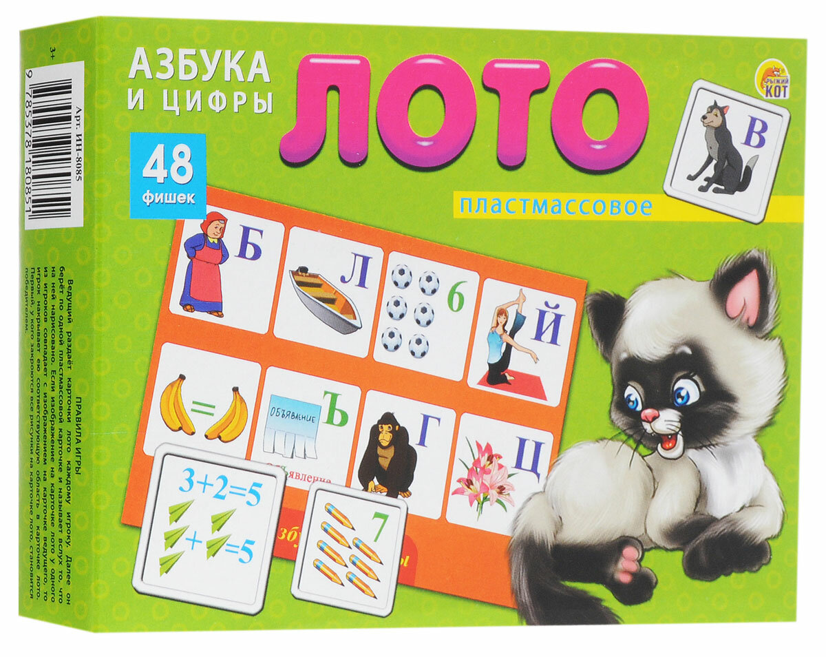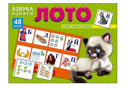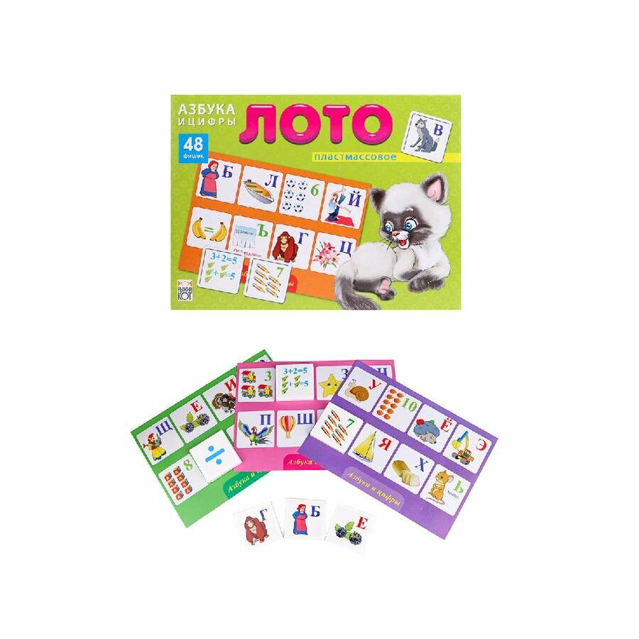 Лото пластиковое "Азбука и цифры" 48 фишек (ИН-8085); Рыжий Кот