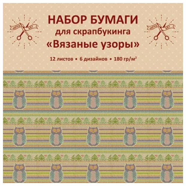Бумага для скрапбукинга односторонняя "Вязаные узоры" (12 листов 6 дизайнов) (НБС12391); Канц-Эксмо, 2018