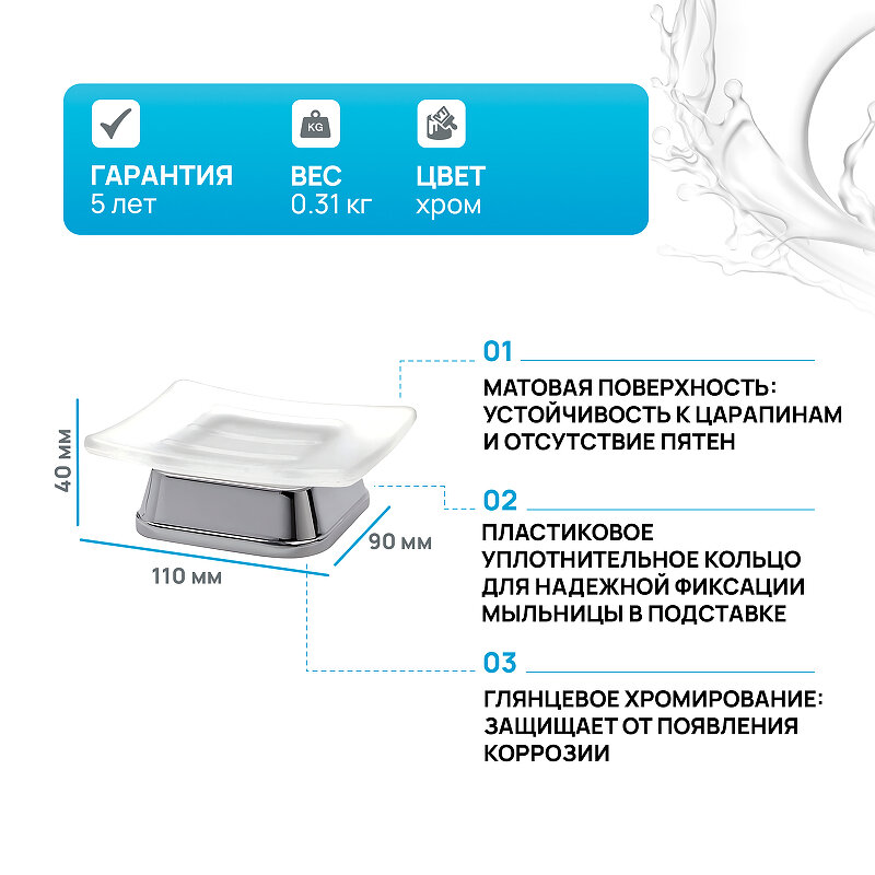 | ВКоробке | Мыльница - 1 шт. Подставка - 1 шт. Инструкция - 1 шт. |