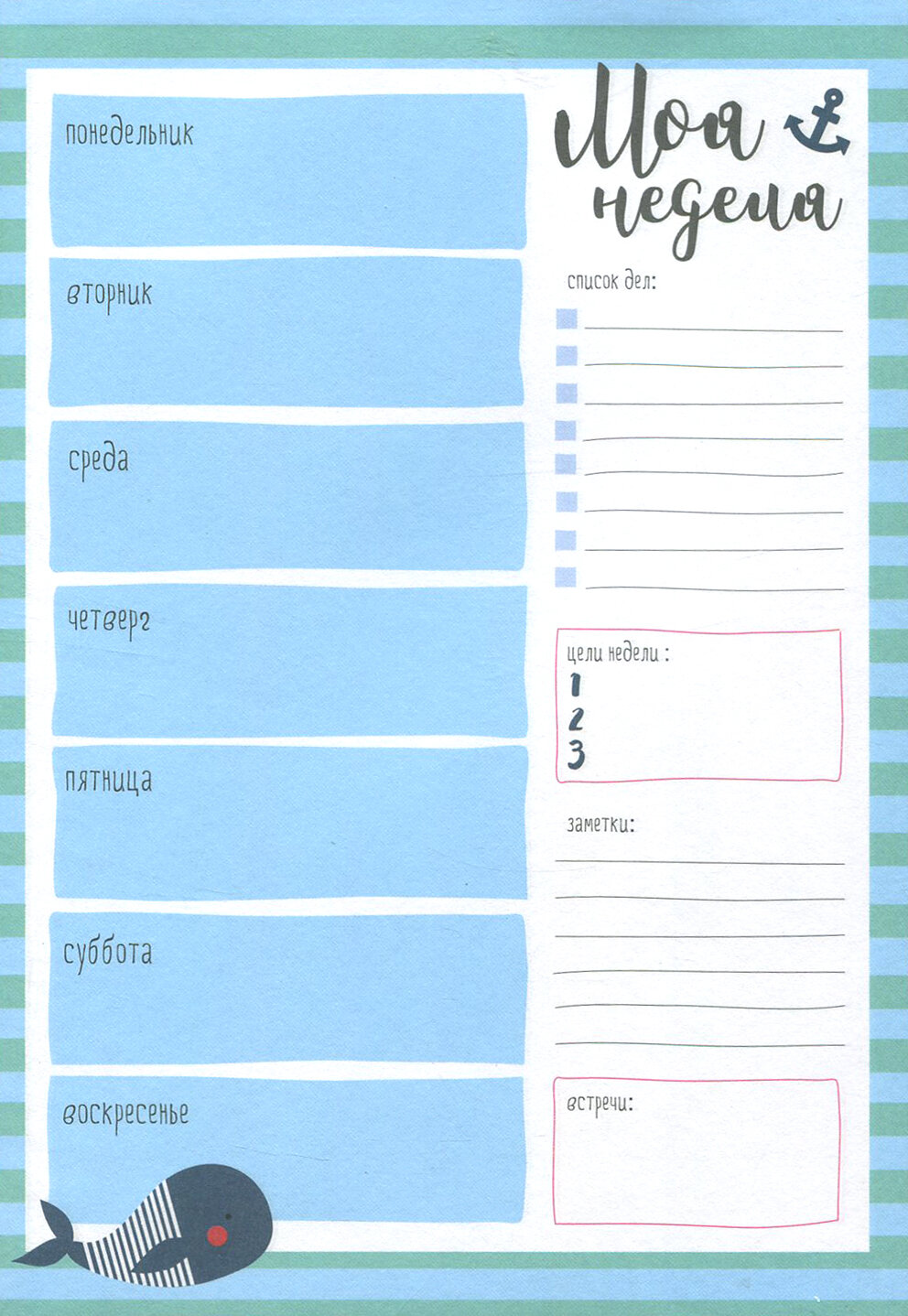 Планер недатированный 28 листов 145*21 см склейка "Sea" кит (N1390); Доминанта, 2018