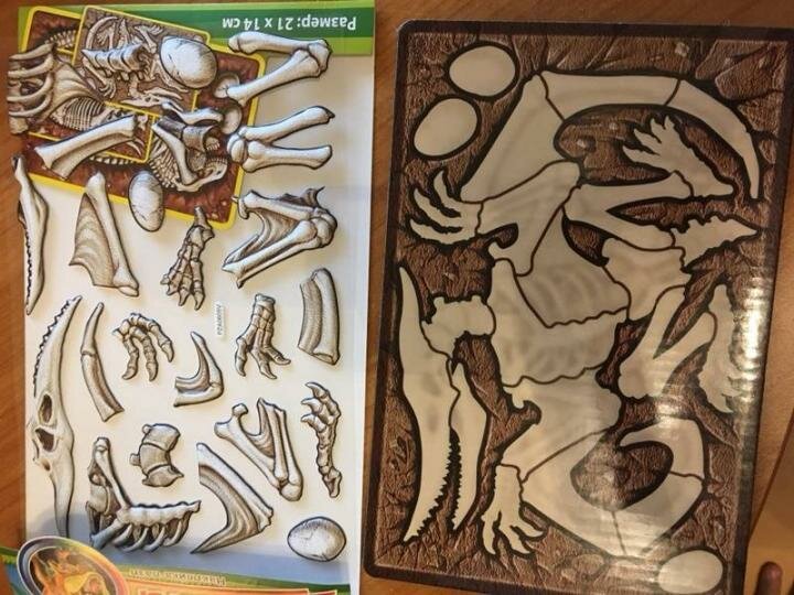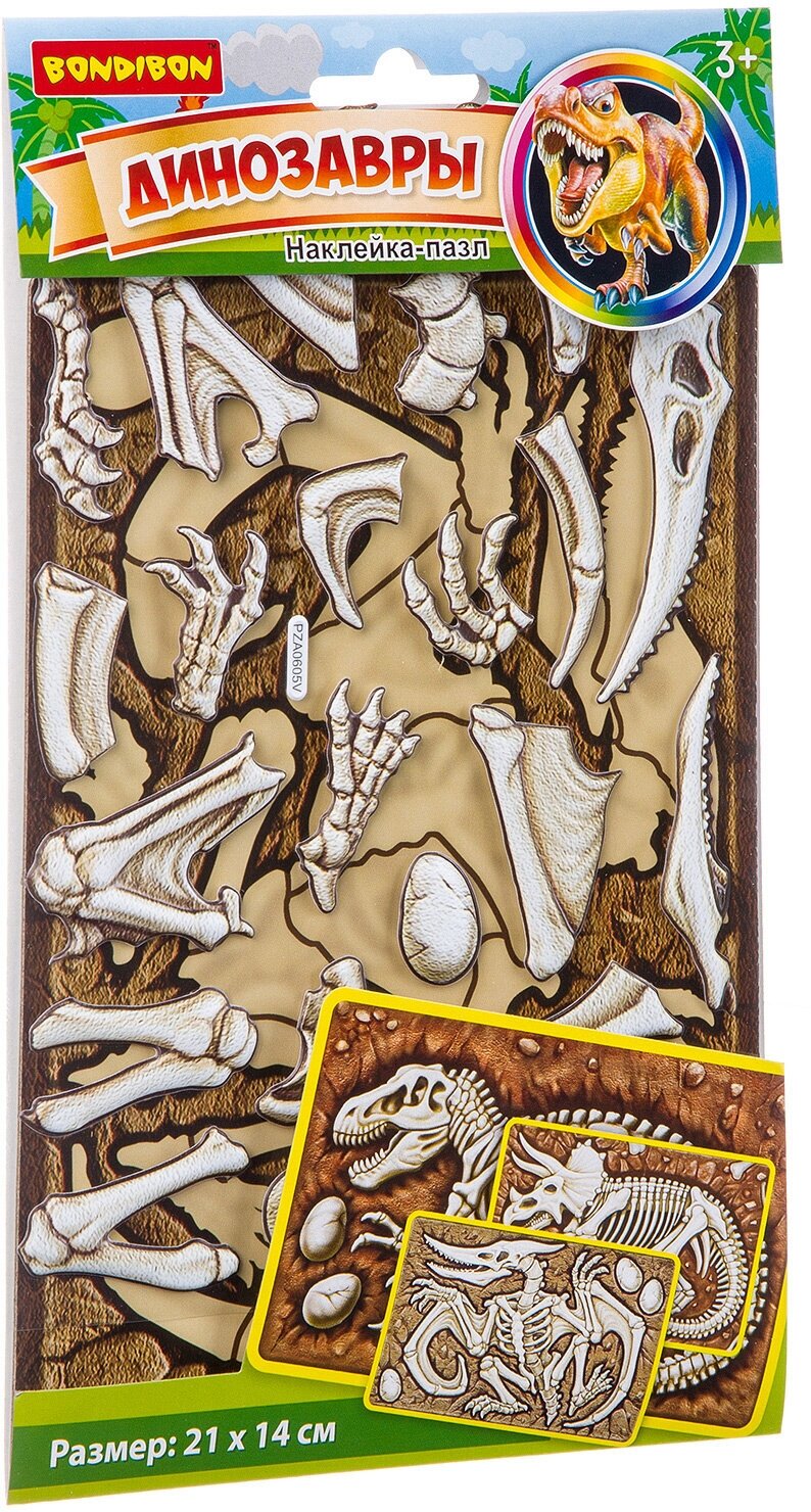 Собрать стильный пазл с динозавром от Bondibon! Чтобы это сделать, достаточно отклеить объемные детали пазла от подложки и разместить на картонном листе, входящим в набор, согласно форме. Скелет динозавра готов! Собирай всю коллекцию "ДИНОЗАВРЫ" наклеек-пазлов BONDIBON и изучай виды динозавров!